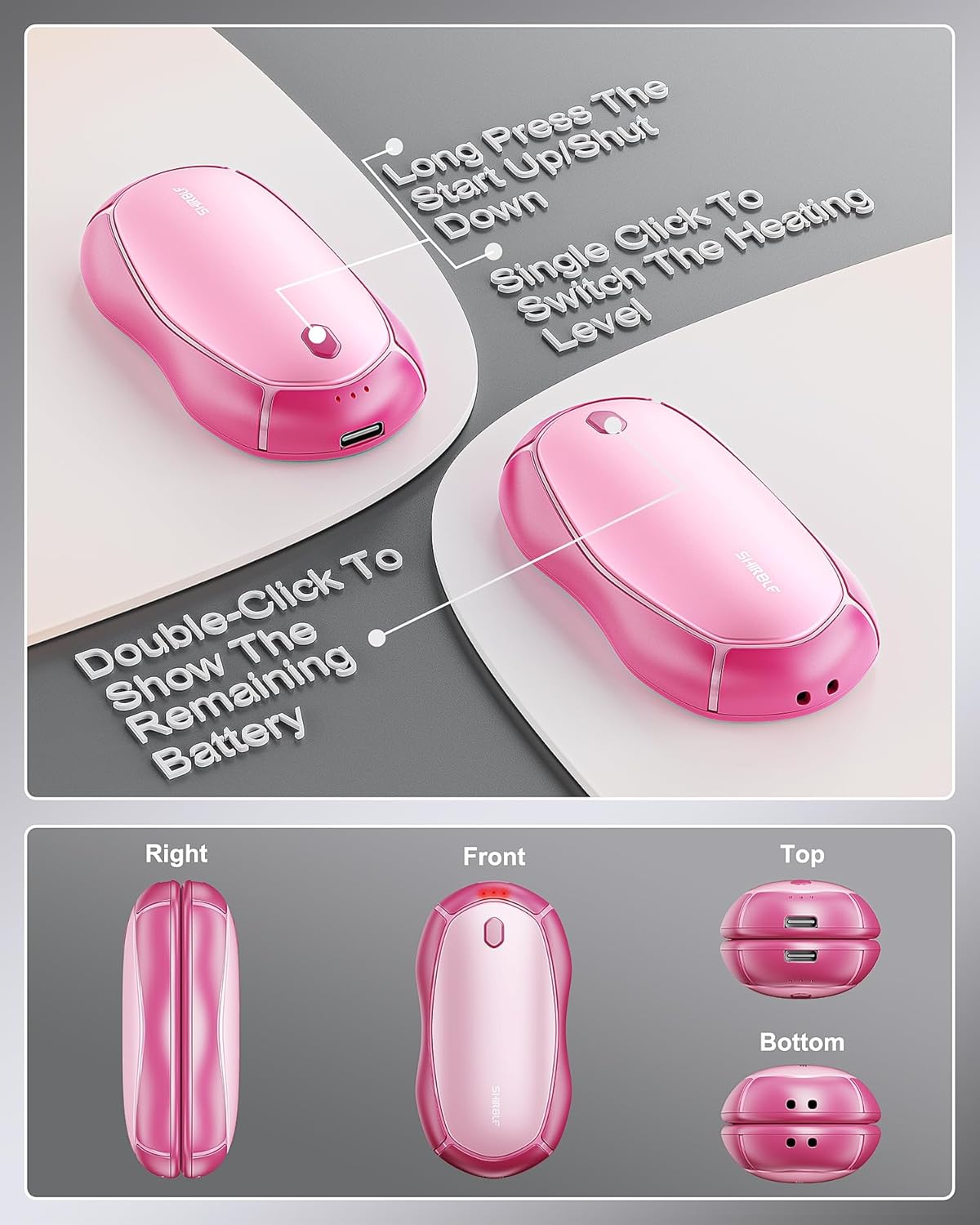 - 【2-in-1 Magnetic Design】This rechargeable hand warmers 2 pack is designed with magnetic attraction, it can be divided into two for independent heating, and portable hand warmer for easy storage. This pocket warmers has a unique shape and feels comfortable to use. Use it as a camping hand warmers and share it with your friends and family.
