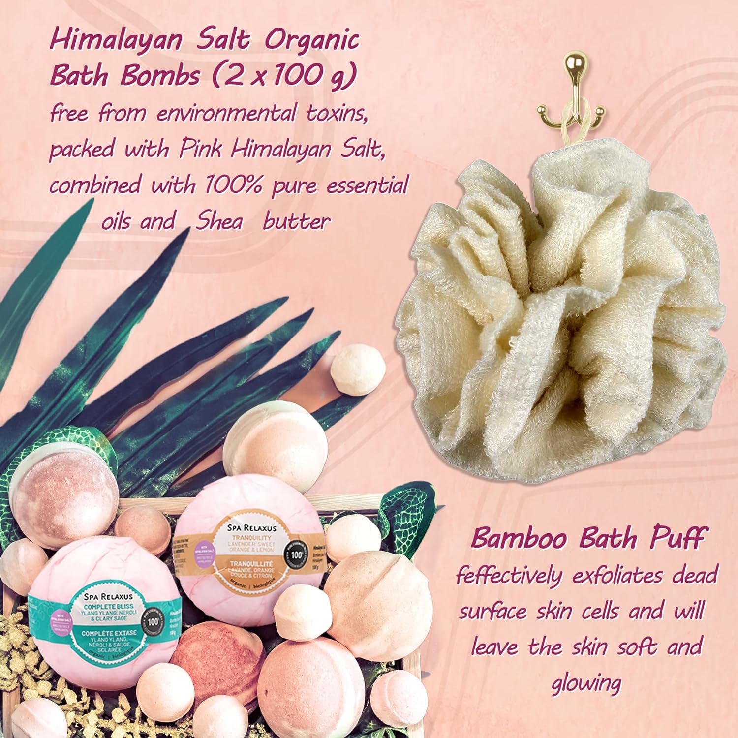 - ๐DELUXE BIRTHDAY GIFTS FOR WOMEN - includes Handmande Himalayan Salt Soap, Bamboo Charcoal & Sea Salt Foot Mask, 2pcs Handmade Natural Aromatherapy Shower Bombs, 2pcs Handmade Himalayan Salt Bath Bombs, 2pcs Deluxe Spa Face Masks, Bamboo Bath Puff & a Designers Cosmetic Bag