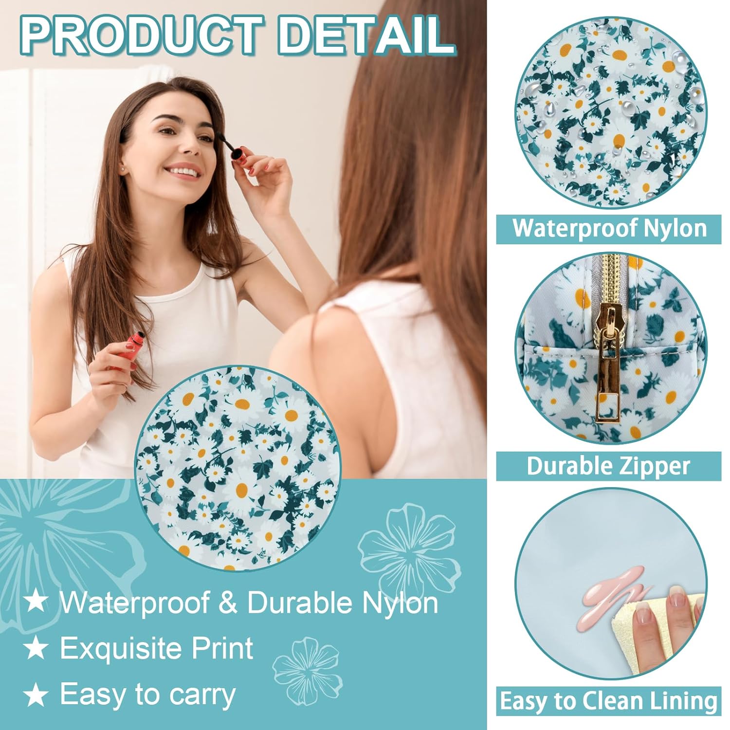 - 【Superior Quality】The floral makeup bag is made of lightweight and durable high quality nylon. It is waterproof and easy to clean, helping to protect your cosmetics and toiletries from water spill accidents. Age grading: 156months+;Age group applied in testing: Over 3 years.