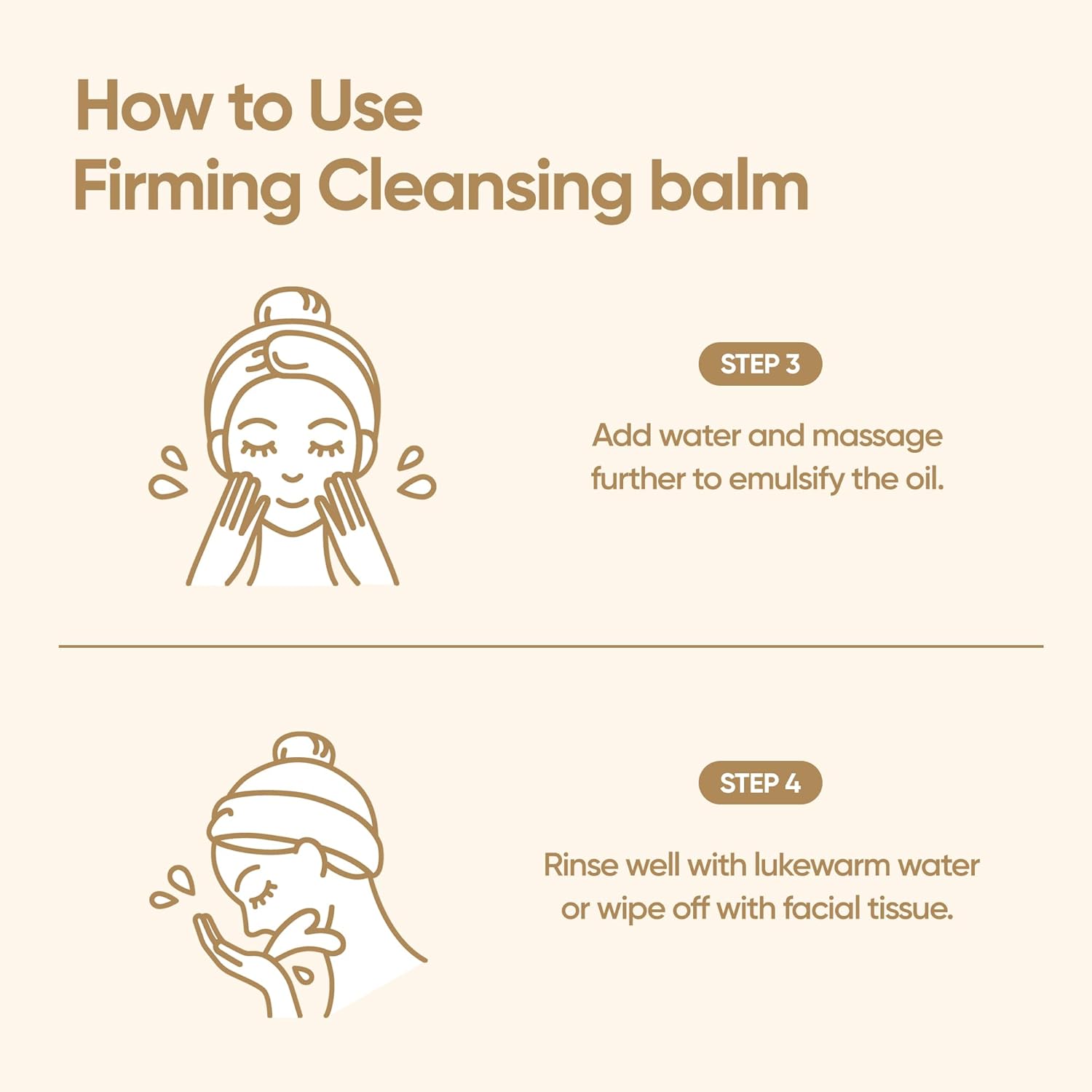 - How to Use๐ Scoop the appropriate amount using the spatula included. Gently massage in a circular motion onto dry skin using your fingertips to remove makeup and residue. Add water and massage further to emulsify the oil. Rinse well with lukewarm water.