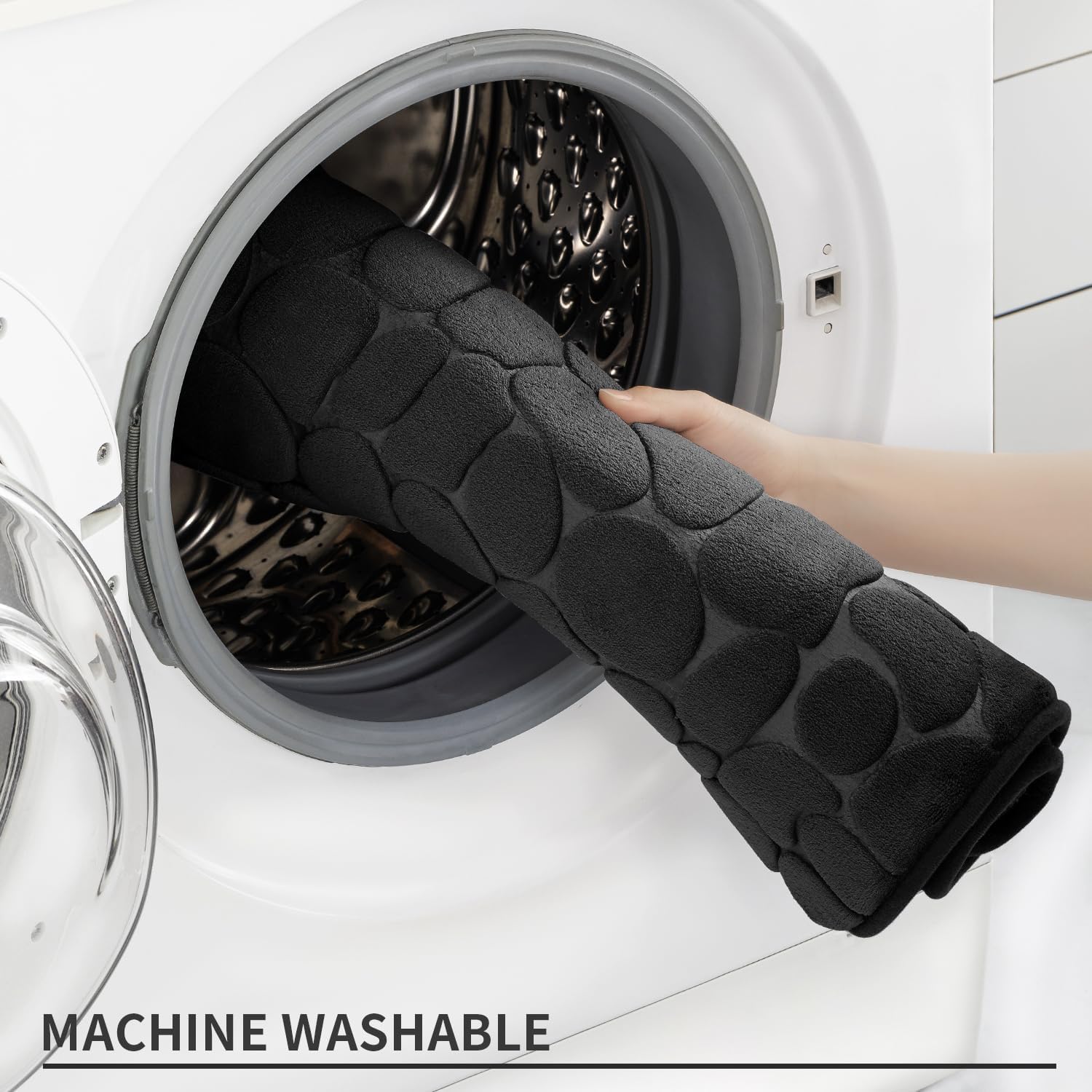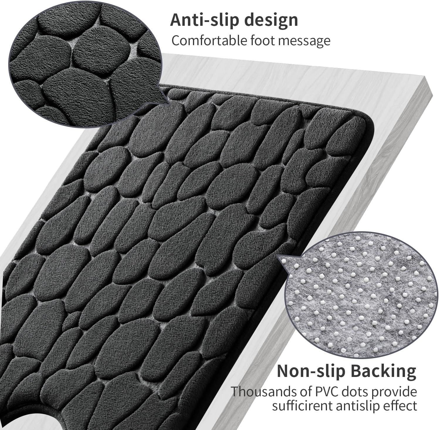YIHOUSE Memory Foam Bath Mat Cobblestone Bathroom Rugs Super Water Absorbent Bath Mats for Bathroom Machine Washable Bath Rugs(20 x 24,Black)