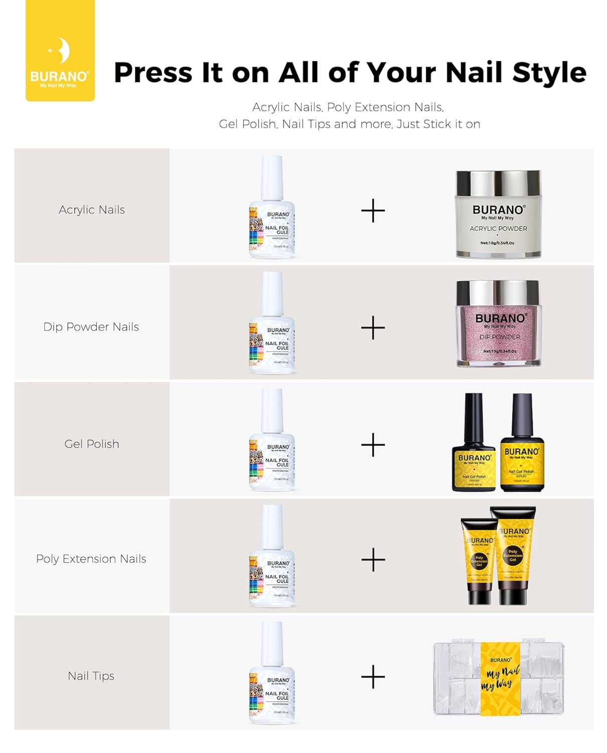 - Worked With LED UV Lamp: Burano transfer foil glue should be cured by LED UV nail lamp to get better result. Apply base gel,apply foil glue, transfer sticky, apply top coat, cure the lamp every step. Done