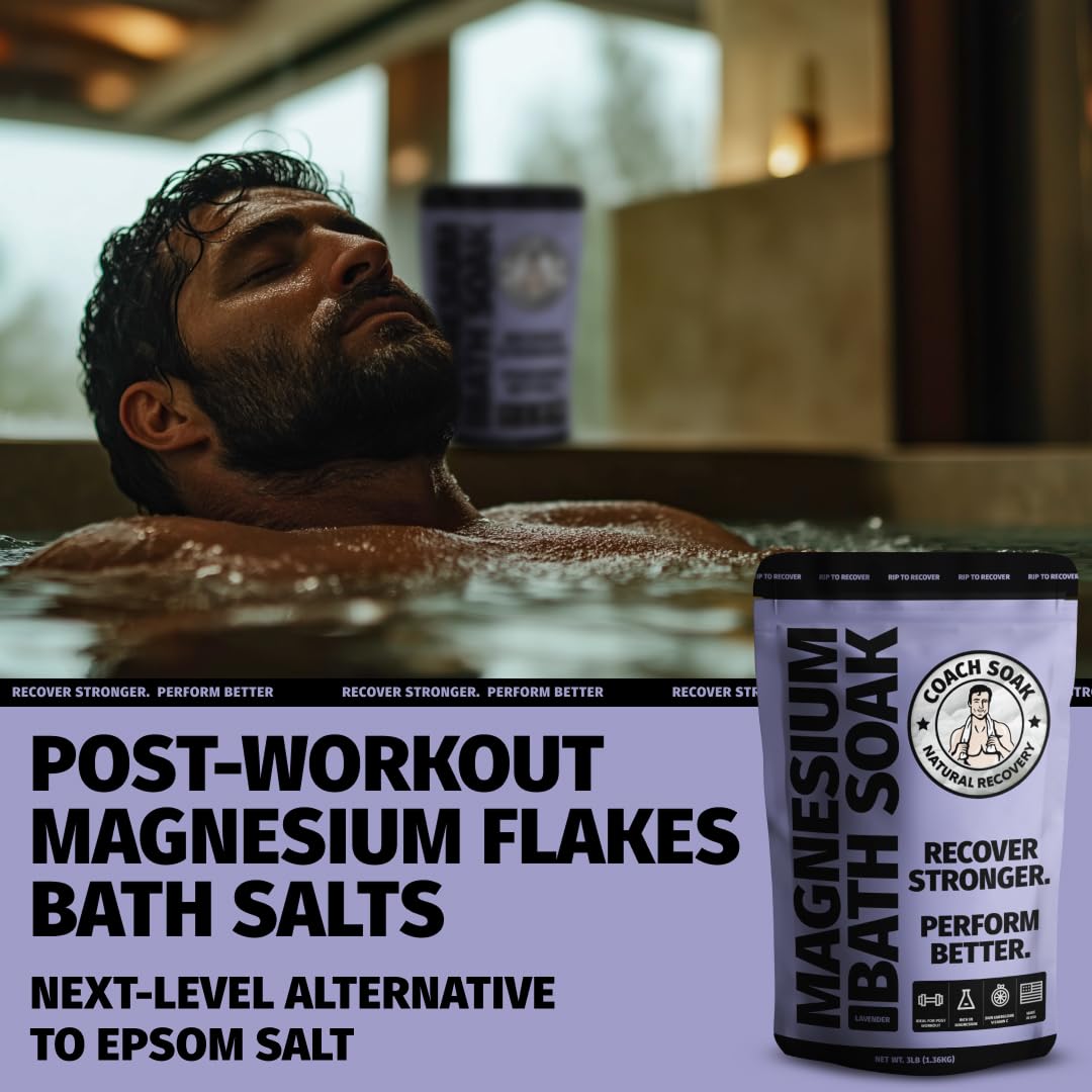 Coach Soak Recovery Bath Soak - Alternative to Epsom Salt Bath Soak - Fast-Absorbing Pure Magnesium Flakes with 21 Minerals, Bath Salts & Essential Oils - 15 lb (5 Pack) - Lavender
