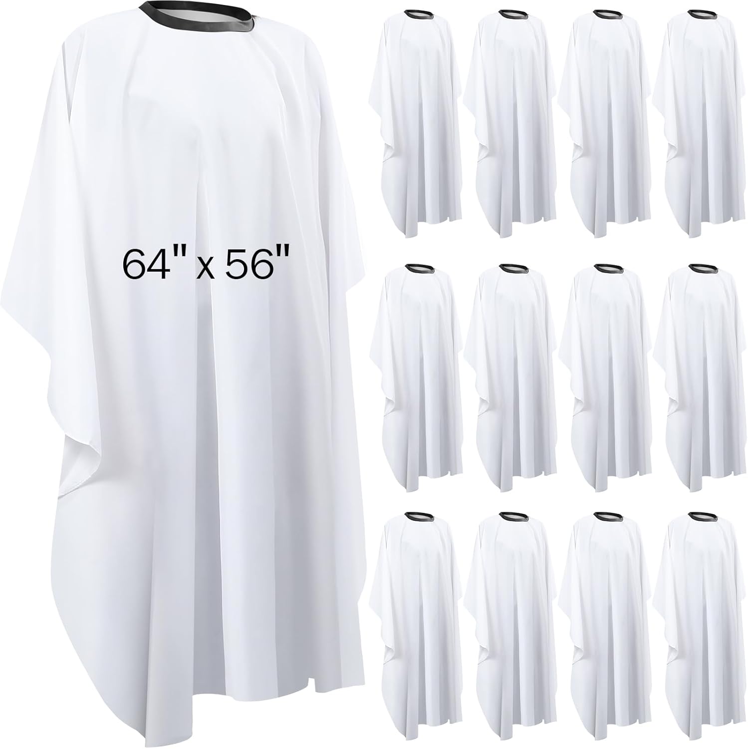 - Plus Size: salon cape is 162 x 142 cm/ 64 x 56 inches, barber cape for men, adults, women are large and long enough to cover your body of different height; The package has 12 pieces shampoo capes in white, meeting your daily using and replacing needs for hairstyling