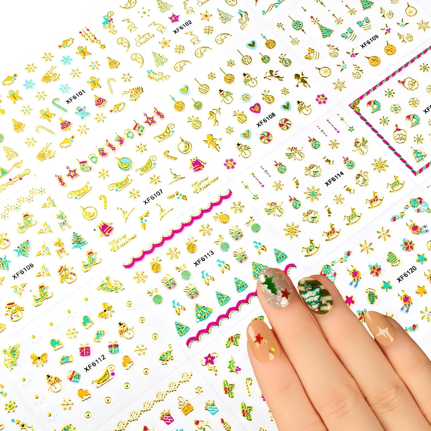 - Christmas Nail Decals: You will get 24 styles Gold nail stickers in one set of different snowmen Santa Claus Christmas tree and elk nail stickers, satisfy all your love for beautiful nails, a variety of elements for you to choose from to DIY your own nail art designs.