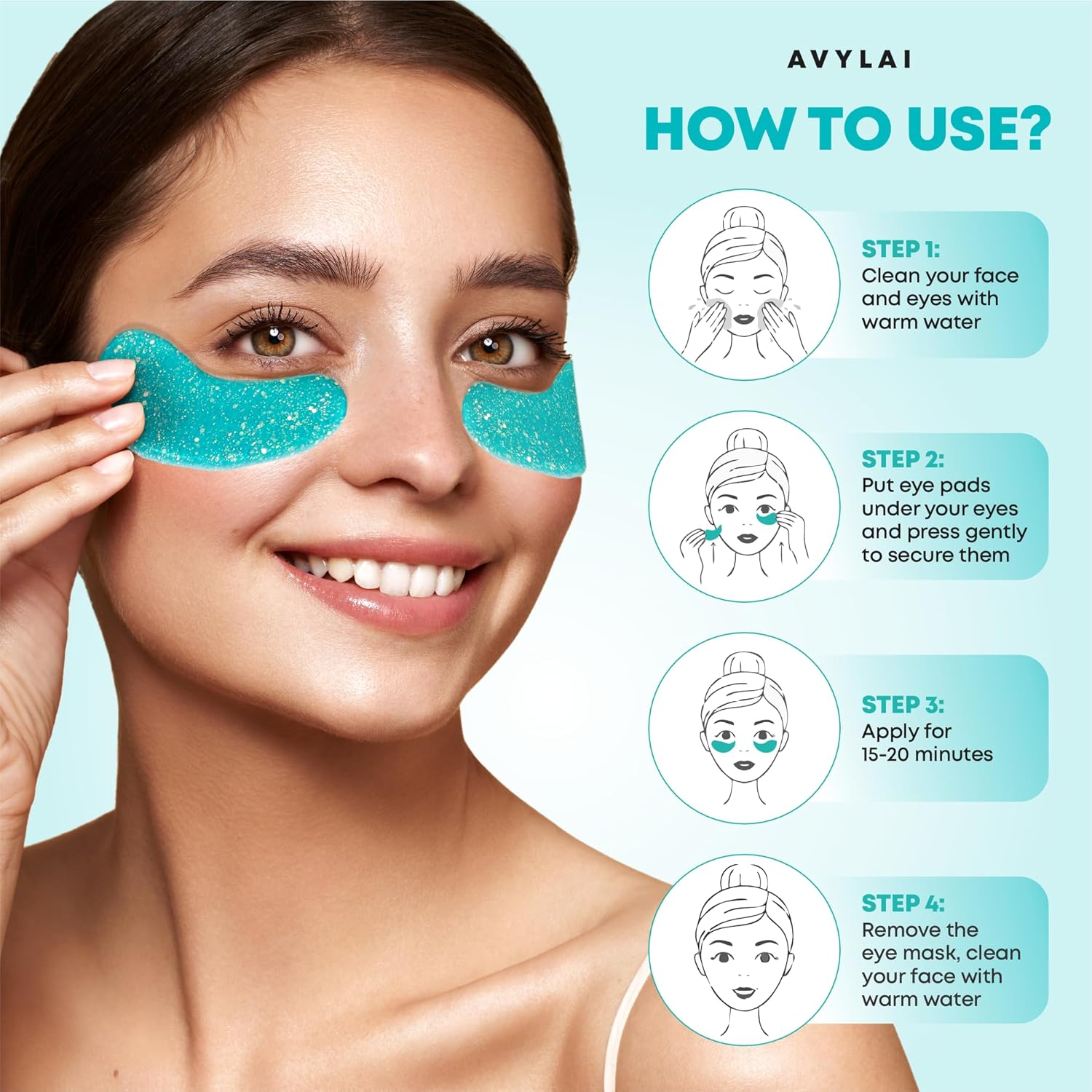 - Under Eye Patches for Puffy Eyes and Dark Circles: Avylai Collagen Eye Mask helps maintain the moisture of the skin and prevents dryness and dehydration to ensure proper hydration within the eye area. Proper hydration will reduce the appearance of Dark Circles and puffy skin, as well as prevent it from showing signs of wrinkles.