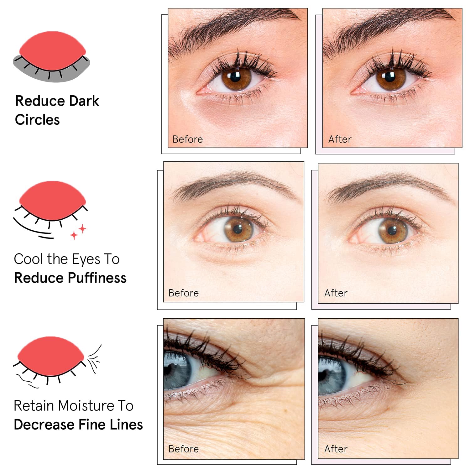 - 【roven Results】According to a 6-week independent consumer survey, 91% reported that the under-eye patch reduced under-eye puffiness and 88% reported a reduction in fine lines around the eyes.Making these moisturizing eye patches both hydrating and firming.