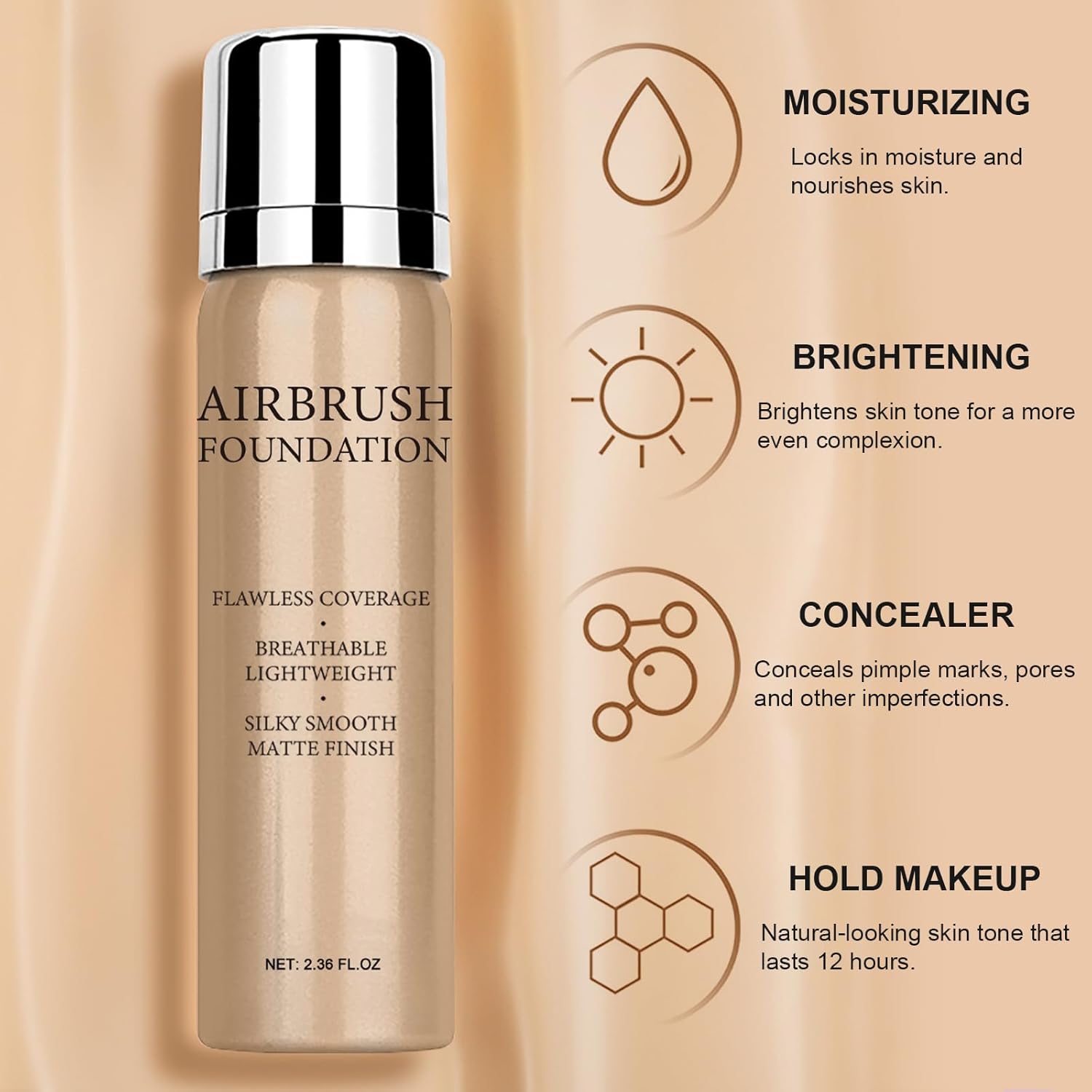 - 【FOUNDATION MAKEUP SPRAY】This foundation makeup spray provides full coverage for your cheeks with a lighter, creamier hydrating formula that locks in moisture and conceals imperfections, pores, wrinkles, and dark circles, giving your face a soft matte finish and a natural, bright, even skin tone.