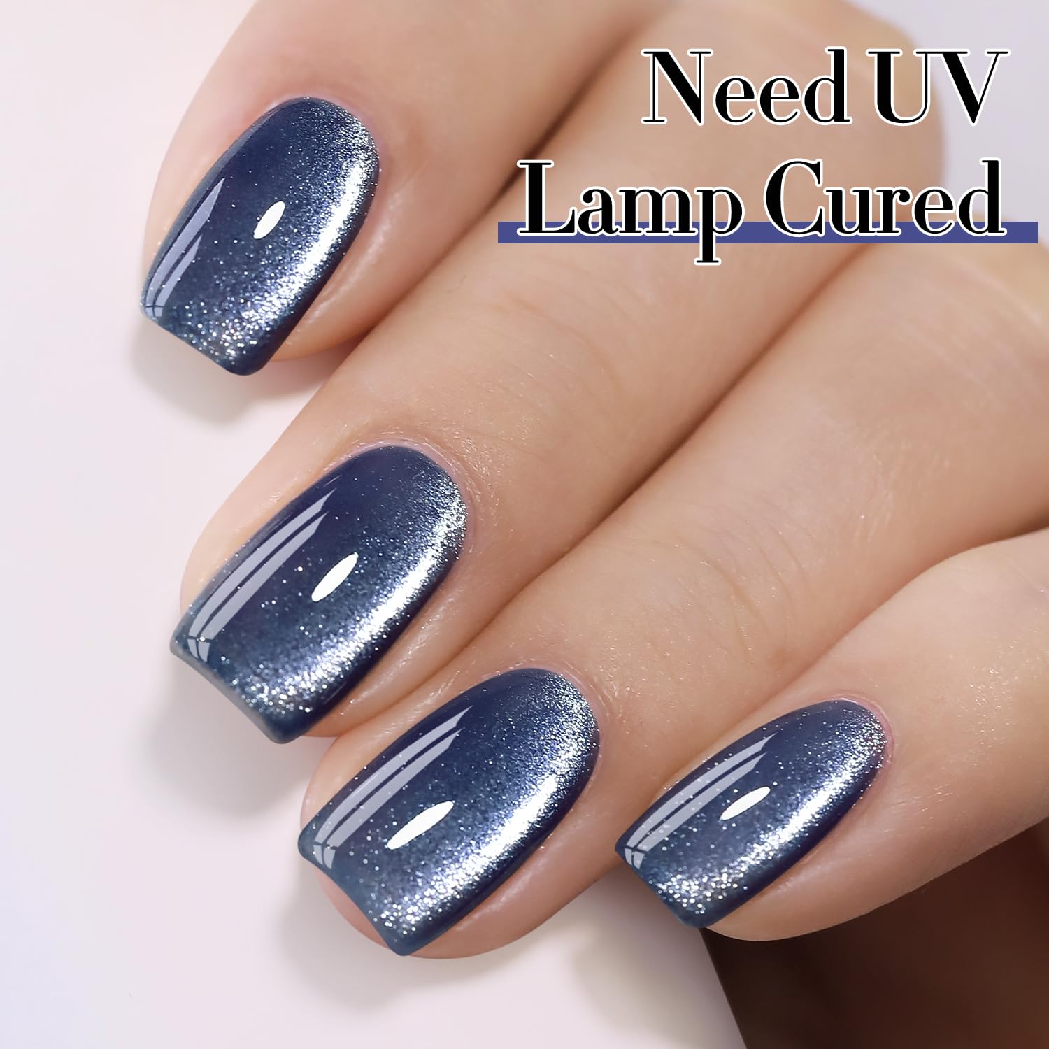 Double Rhythm 0.5 OZ Cat Eye Gel Polish with Magnet 15ML Holographic Glitter Shimmer Translucent Jelly Color Magnetic Polish Salon DIY at Home (Dark Blue-MC1044)