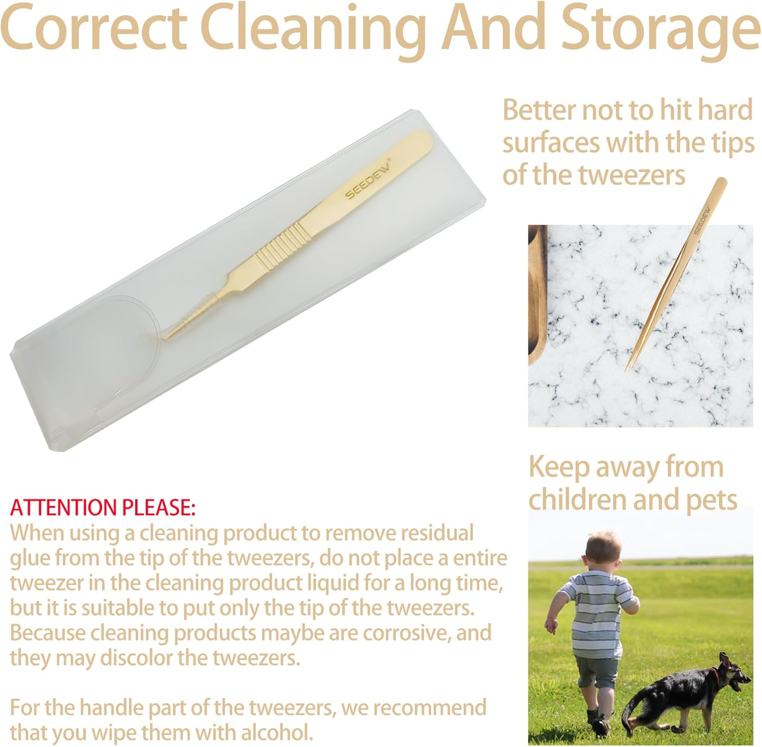 - โค๏ธใComfortable And CleanใSEEDEW tweezers are ergonomically designed, and the comfortable handle is suitable for long-time holding and using. Eyelash tweezers can help you reduce contact with your clients' skin and eyes, cleaner and safer.