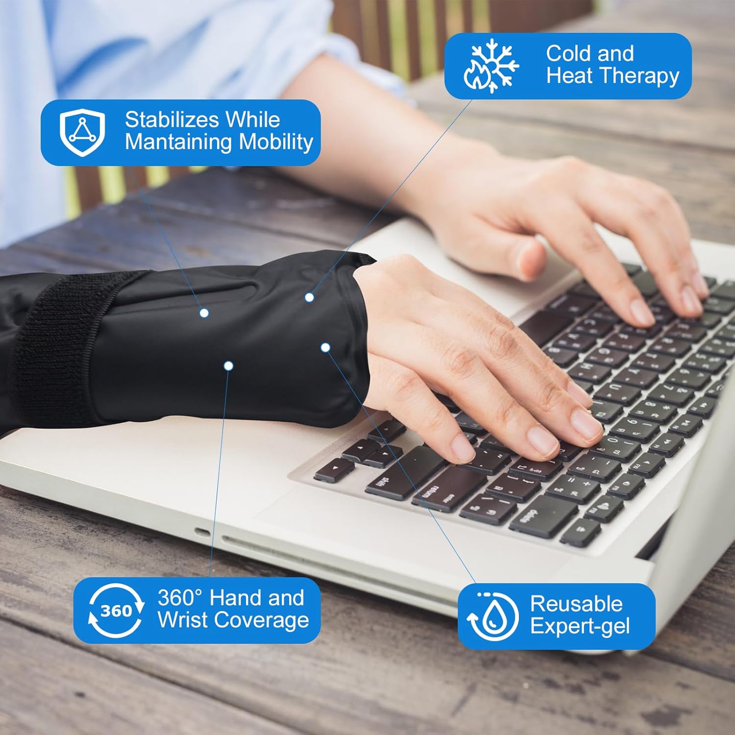 - Full Coverage Hand Wrist Thumb - The Blobuste Wrist Ice Pack Wrap is a versatile and reusable solution for hand injuries, including carpal tunnel, arthritis, and tendinitis. With a gel compression support system, this flexible hot and cold wrist brace provides instant pain relief and muscle therapy. Perfect for both men and women, this wrist ice pack wrap for swelling is designed for hands-free application, allowing you to maintain full range of movement during use.