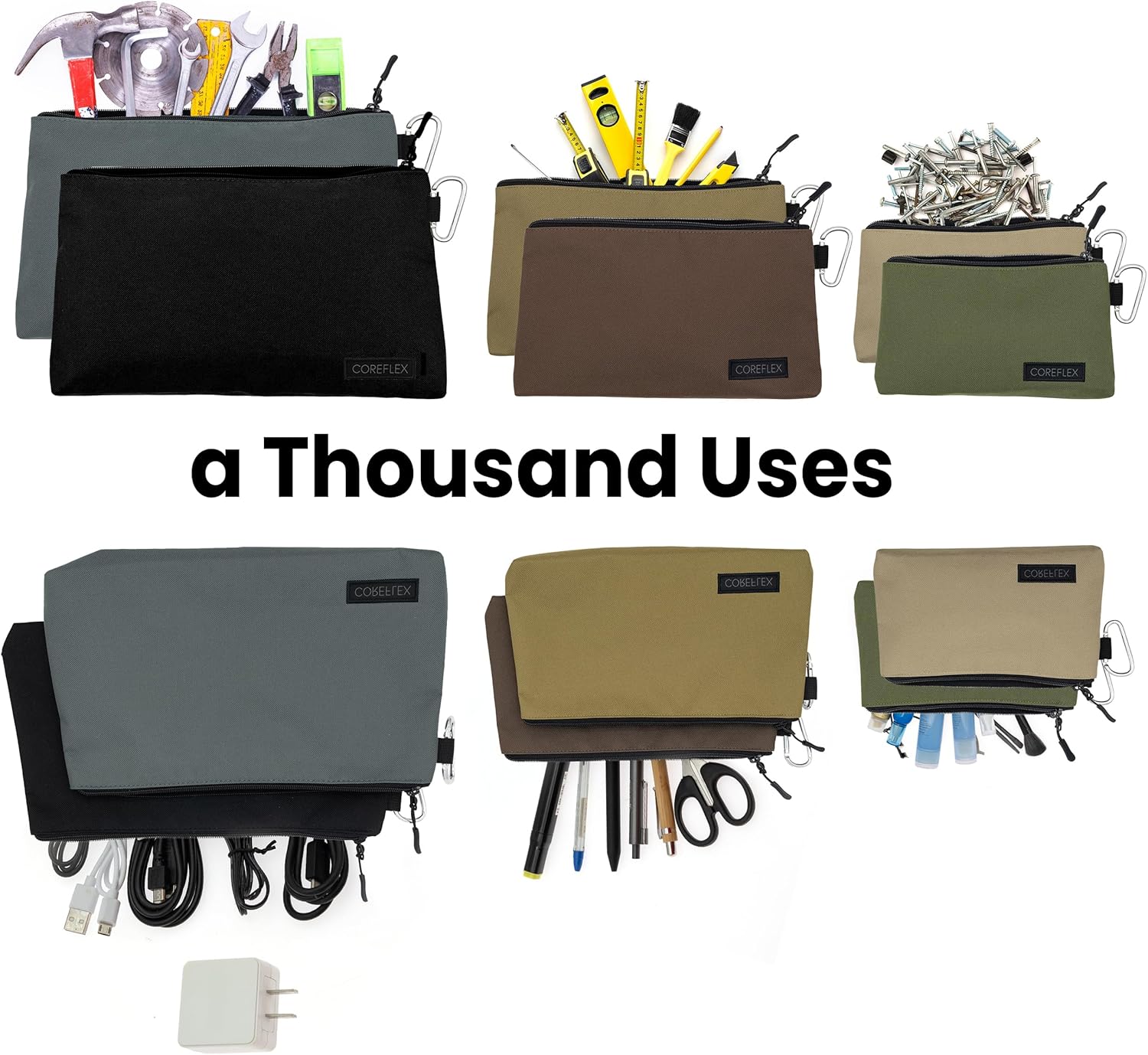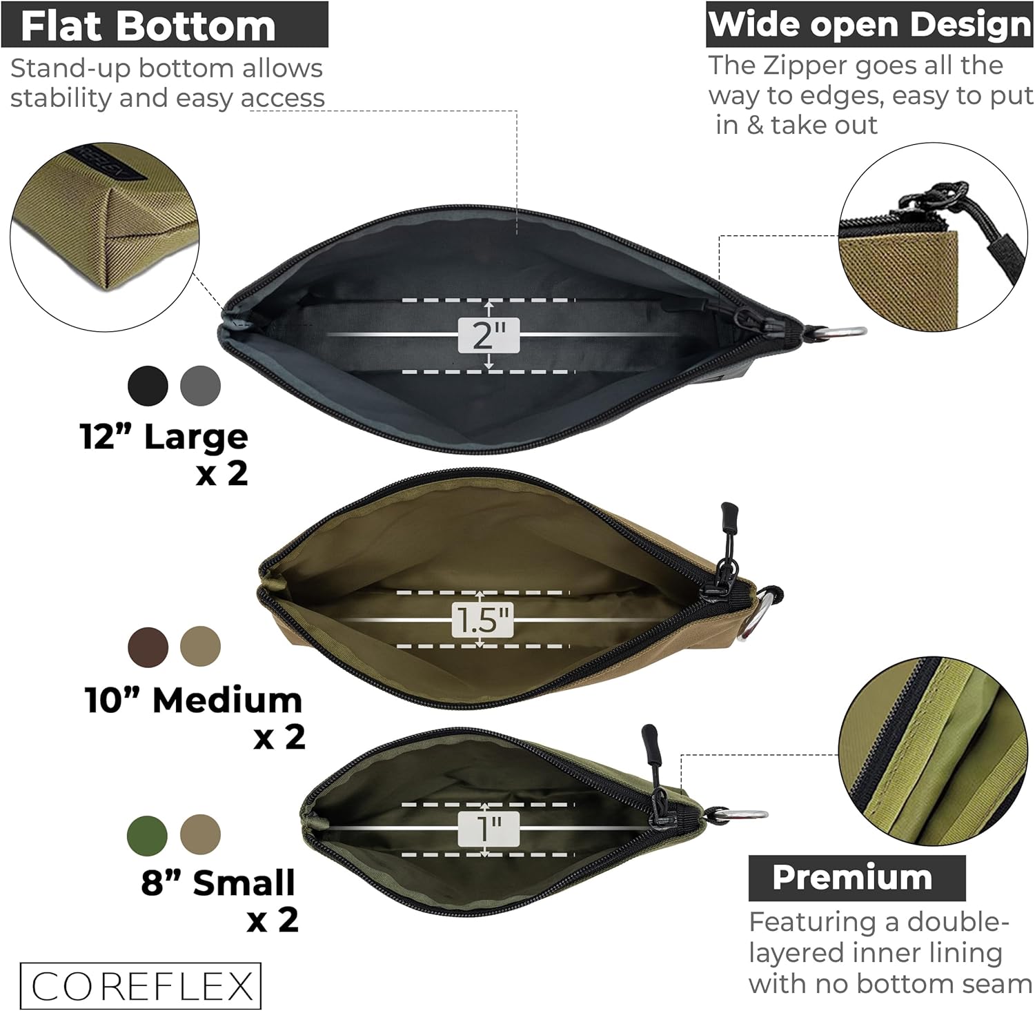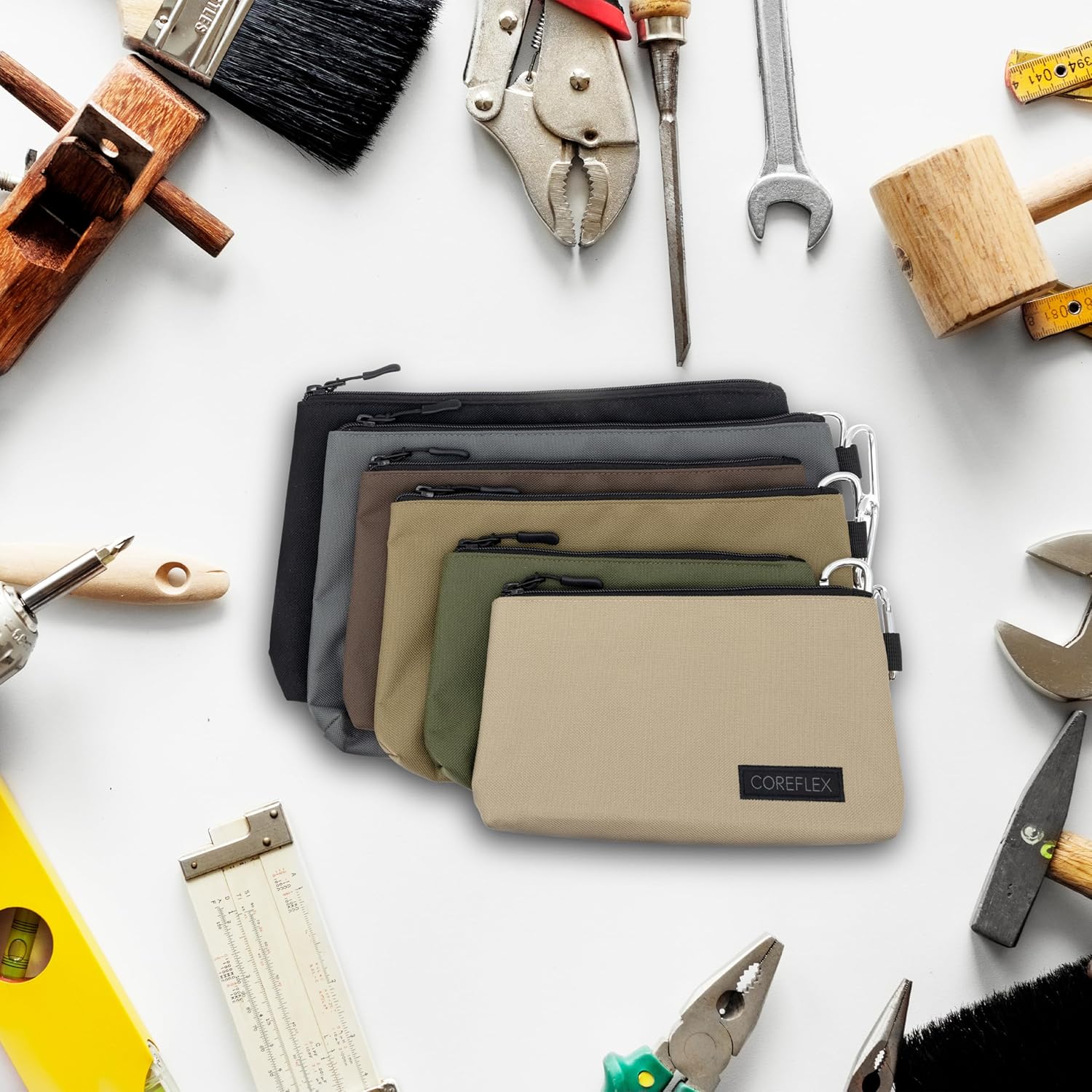 COREFLEX Premium Tool Pouch Zipper Bag, Small Tool Bag, Multipurpose Storage pouch, Heavy duty Flat Bottom Tool bag with YKK Zipper (6 pack Combo mixed size)