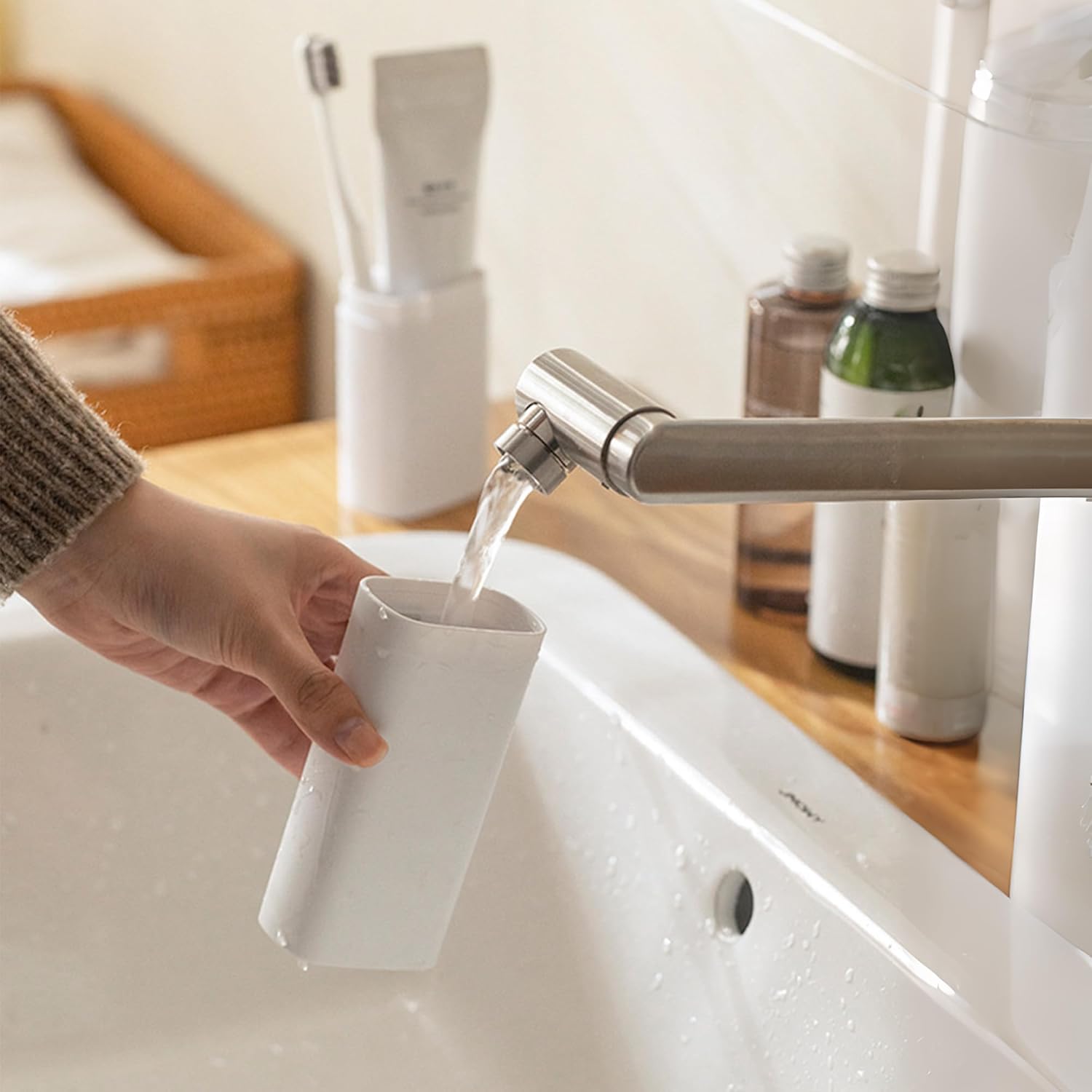 - 【Multifunctional use】The top half can be used as a cup, is both the perfect travel toothbrush/toothpase holder as well as a cup