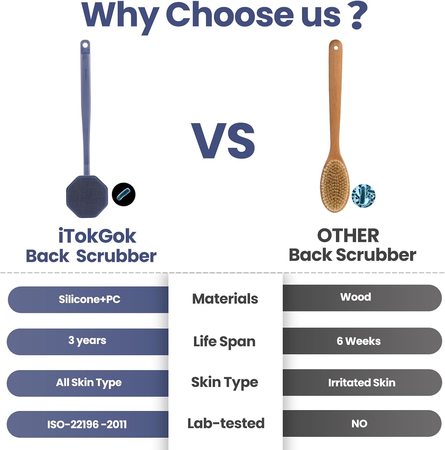 - Design: iTokGok Long Handle Silicone Back Scrubber is Ergonomically Designed, Allowing Access to Hard-to-Reach Areas And Gaps.