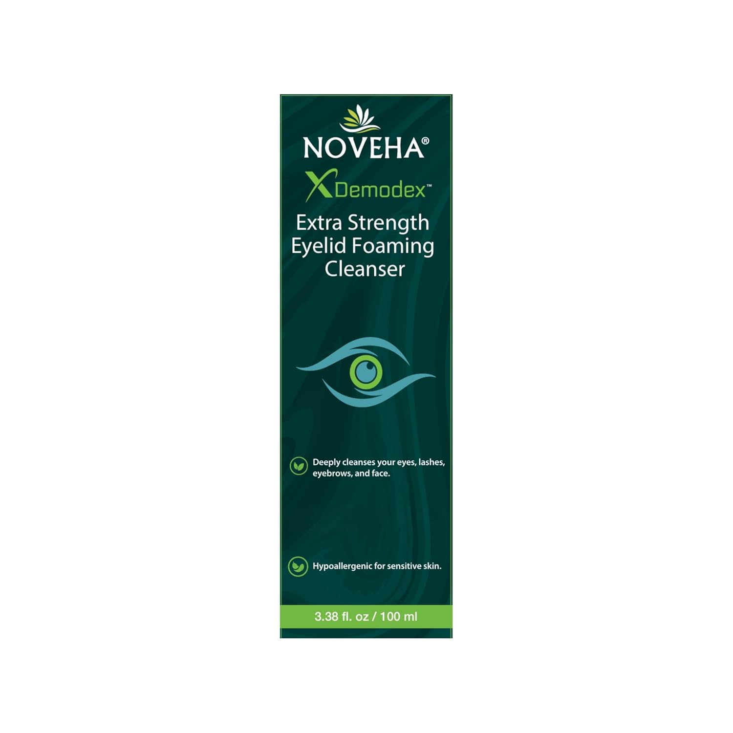 NOVEHA Demodex Eyelid Cleanser Foam | Extra Strength Tea Tree Oil Formula | Daily Face Wash For Eyelash, Demodex, MGD, Stye Eyes, Eye Irritations & Skin Dryness, 3.38 fl. oz. (100ml) - (Pack of 2)