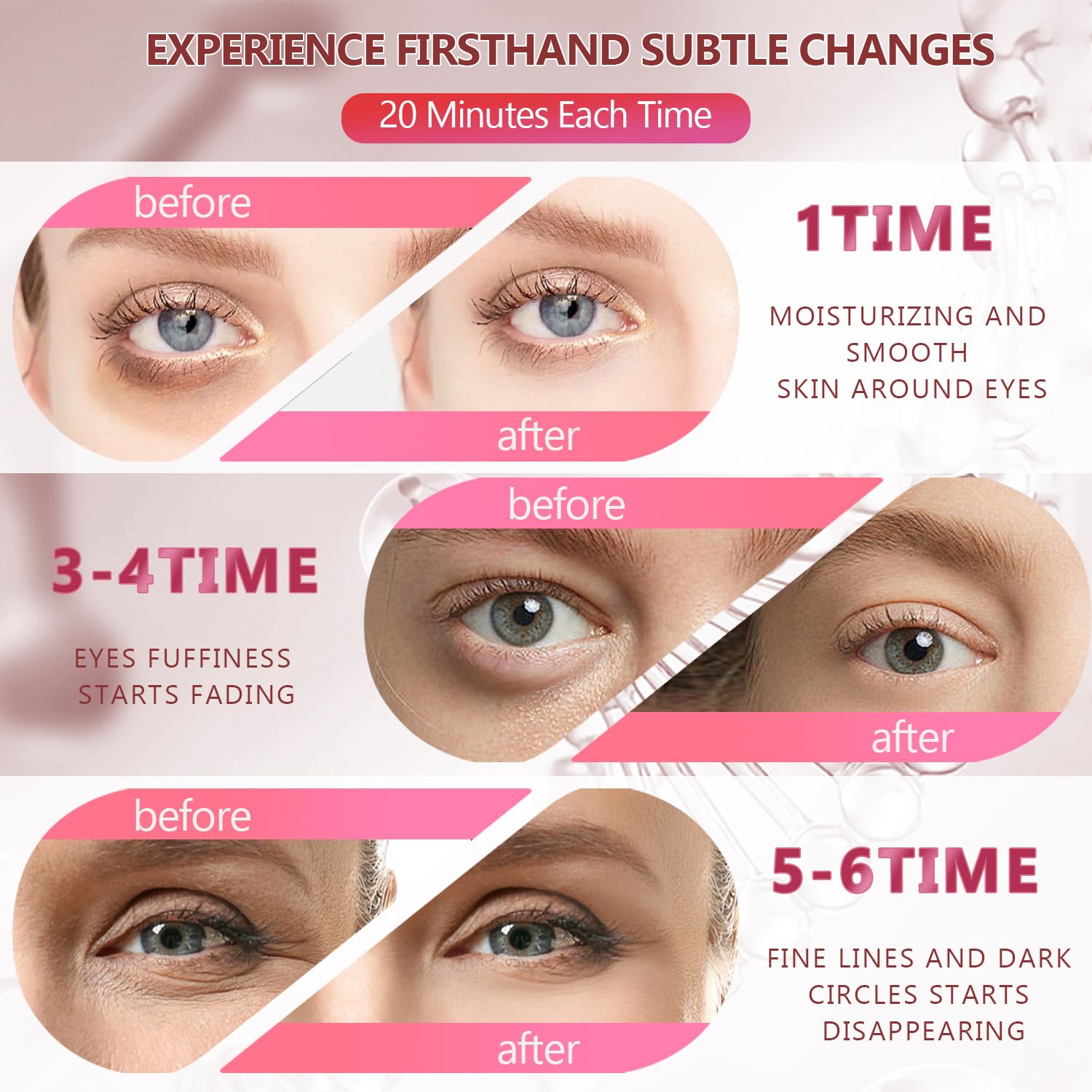 - ENJOY EYE SPA - It only takes 10-15 minutes to enjoy an eye SPA at home! The package includes a small spoon, you can take out the eye patches easily. Apply the mask for 20-30 minutes, targeting the eye corners, forehead, mouth corners, and nasolabial folds, followed by a 1-minute massage.