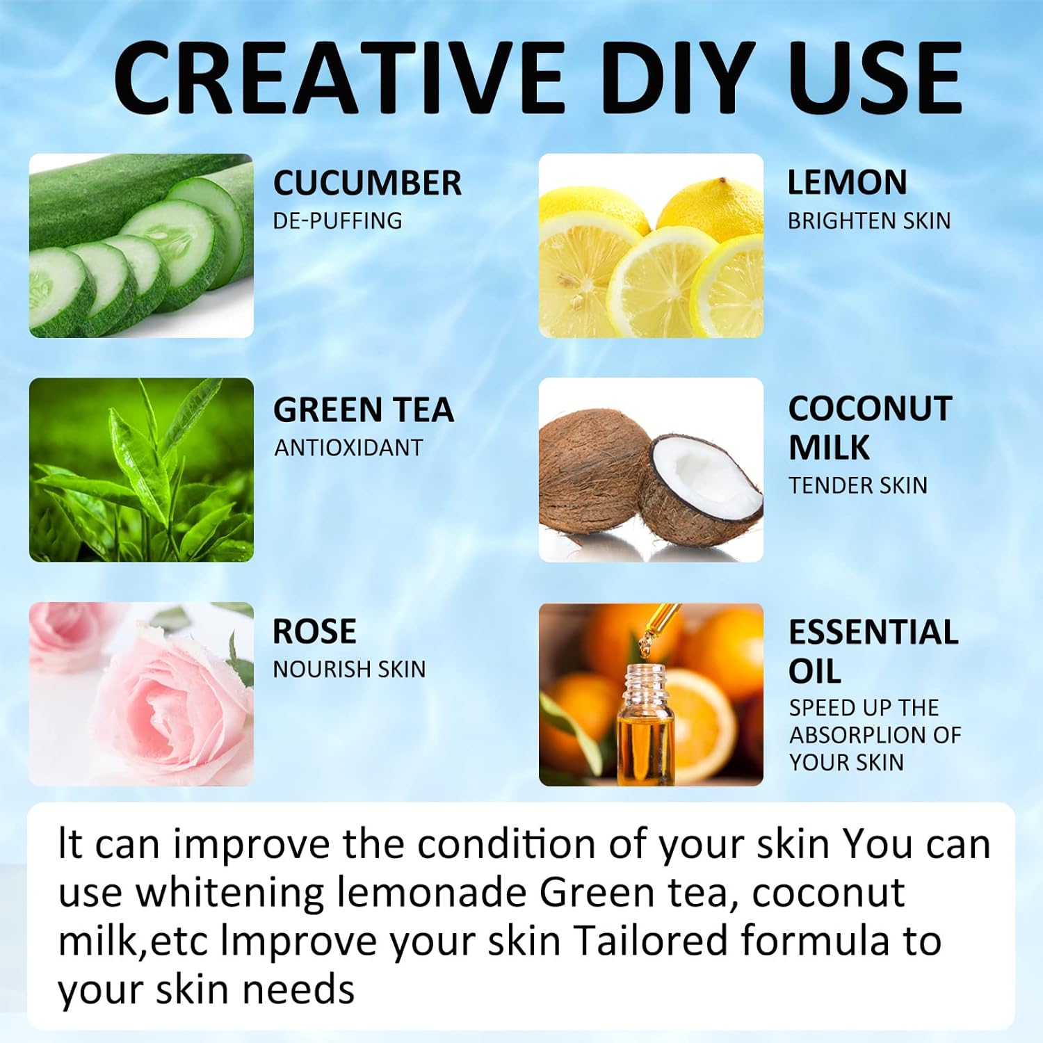 - ใSAVE MONEY & VERSATILEใ --Refillable for a fresh and clean cube with every use. You can add different formulas based on your skin condition to help your skin rejuvenate better, such as 1. Lemon to brighten, 2. Rose to calm, 3. Aloe Vera For Acne Prone Skin, 4. Chamomile and green tea for inflammation, 5. Coconut milk for lubricating, 6.cucumber for reducing swelling, 7.mint leaves for refreshing.