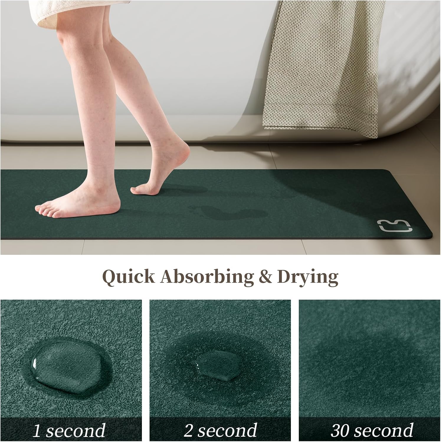 - 【Versatile Usage】This thin bathroom mat is designed to fit under the door and can be used in various settings. Whether in the bathroom rug runner, kitchen mat, laundry room, vanity, sink, hallway, or RV mat, this diatomite stone bath mat adds a stylish and functional touch to any space.