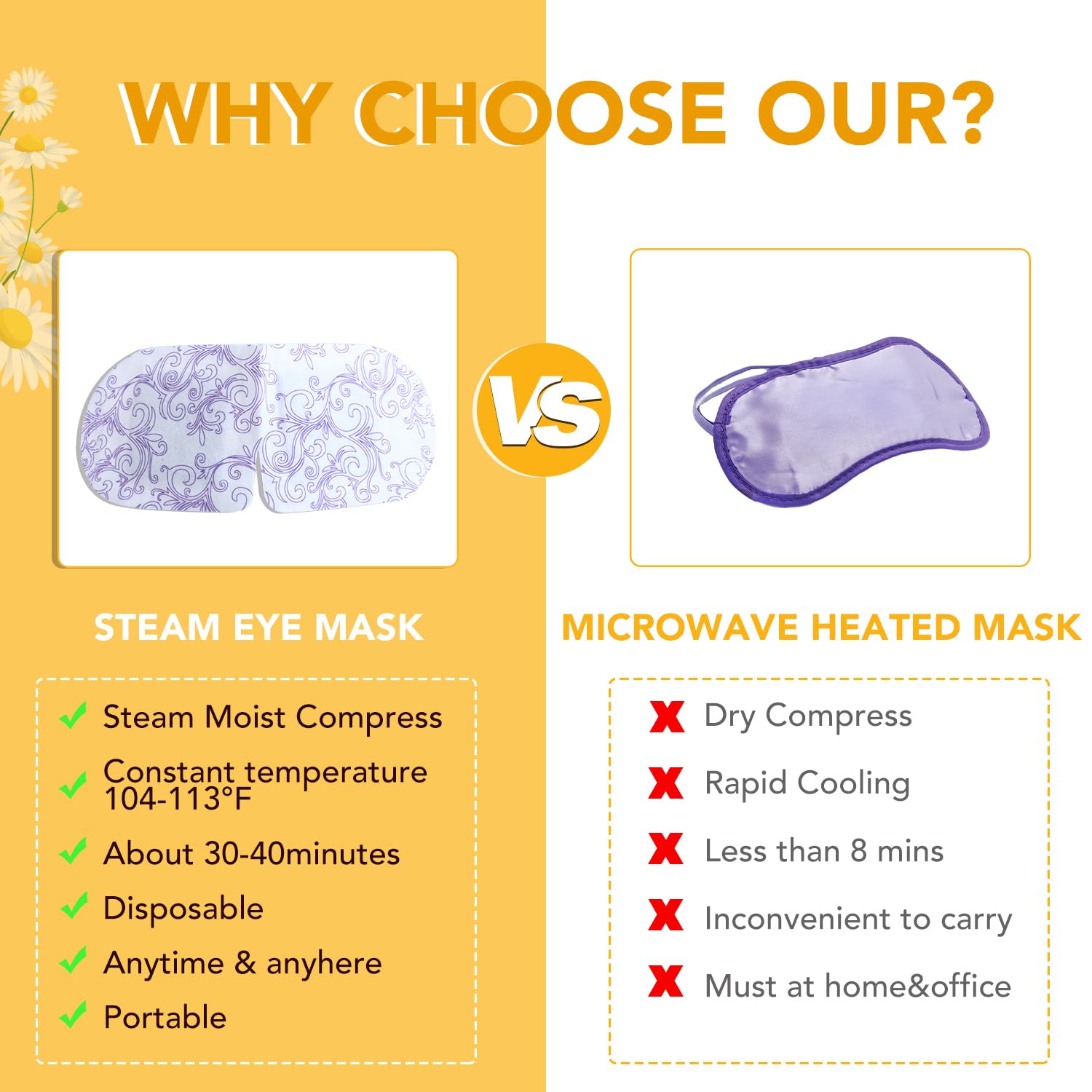 - 【Upgrade Steam Eye Mask】The self heating steam eye mask is made of high-quality cotton non-woven fabric, which is comfortable and skin friendly, fits the eyes well, and effectively reduces problems such as dryness, swelling, and dark circles under the eyes. Steam eye masks can release warm steam, promote blood circulation in the eyes, quickly relax eye muscles, and make the eyes glow naturally.