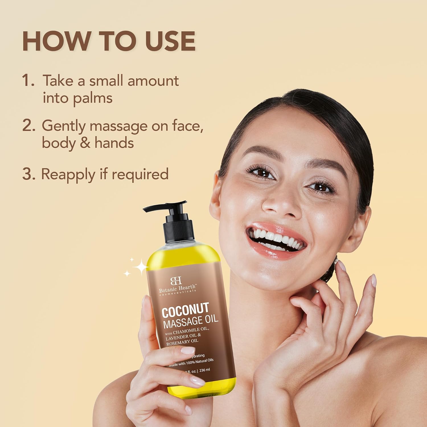 Botanic Hearth Coconut Massage Oil | Ultra|Glide Formula with Soothing Aroma |Made with Natural Oils | All Skin Types, Men & Women | 8 Fl Oz
