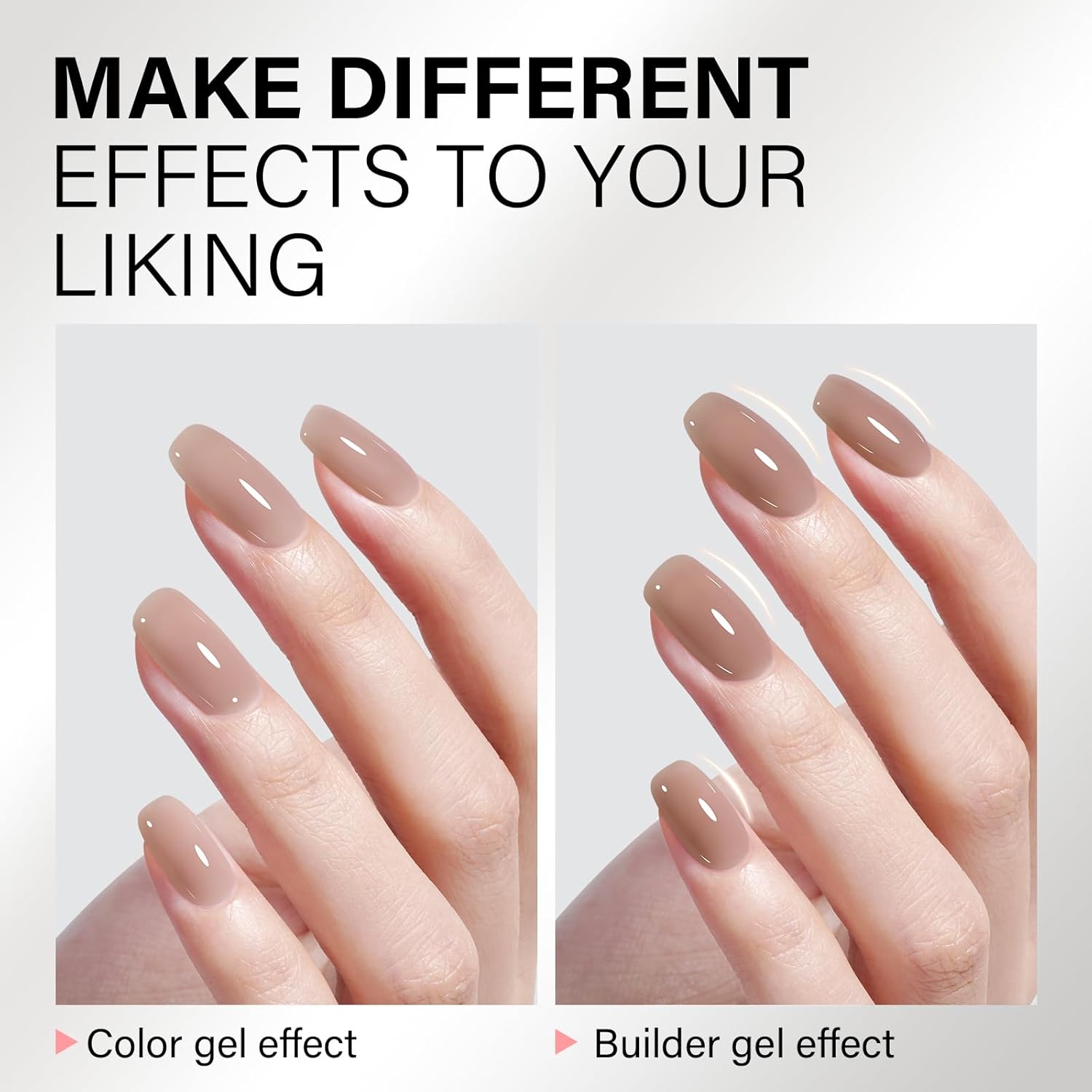 AILLSA Builder Gel for Nails Dark Nude 7 In 1 Strengthener Gel Nail Polish Brown Hard Gel Polish Extension U V Gel Polish Coffee Color Translucent for Nail Art Base Coat Needed 0.51 Oz GB55