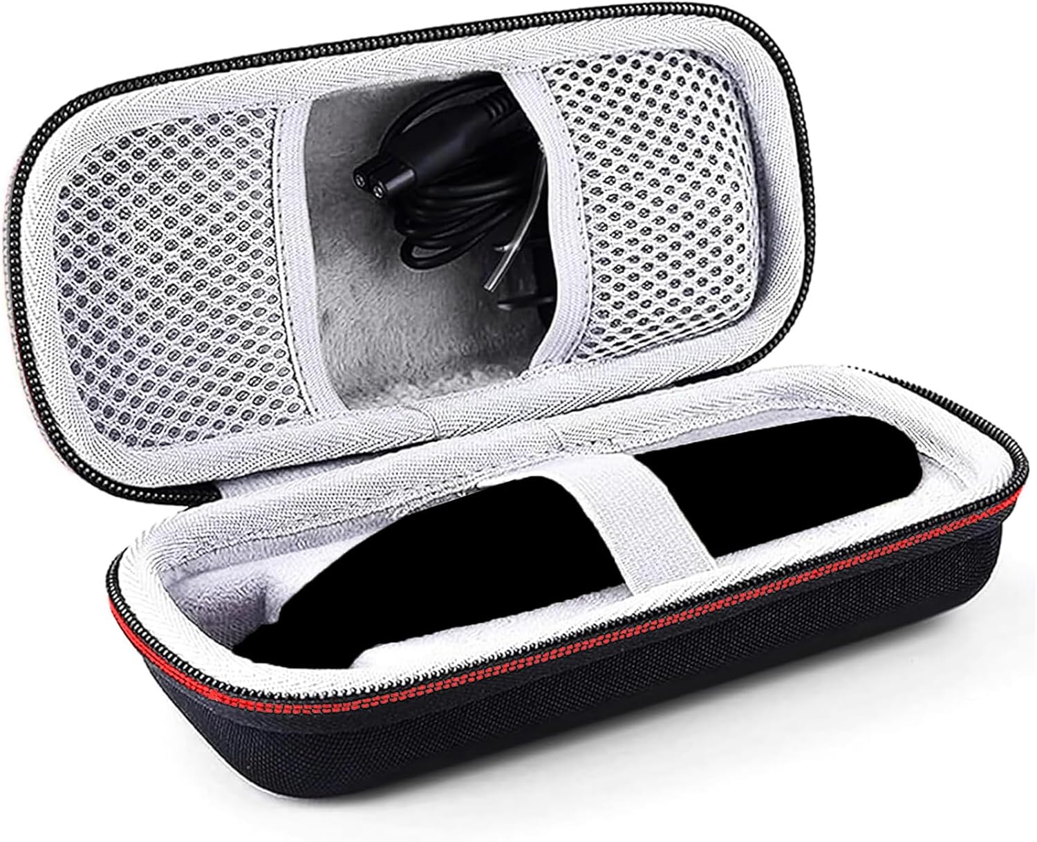 - Smart Storage Design – Elastic straps secure the trimmer; mesh pockets hold replacement blades, charger, and small accessories