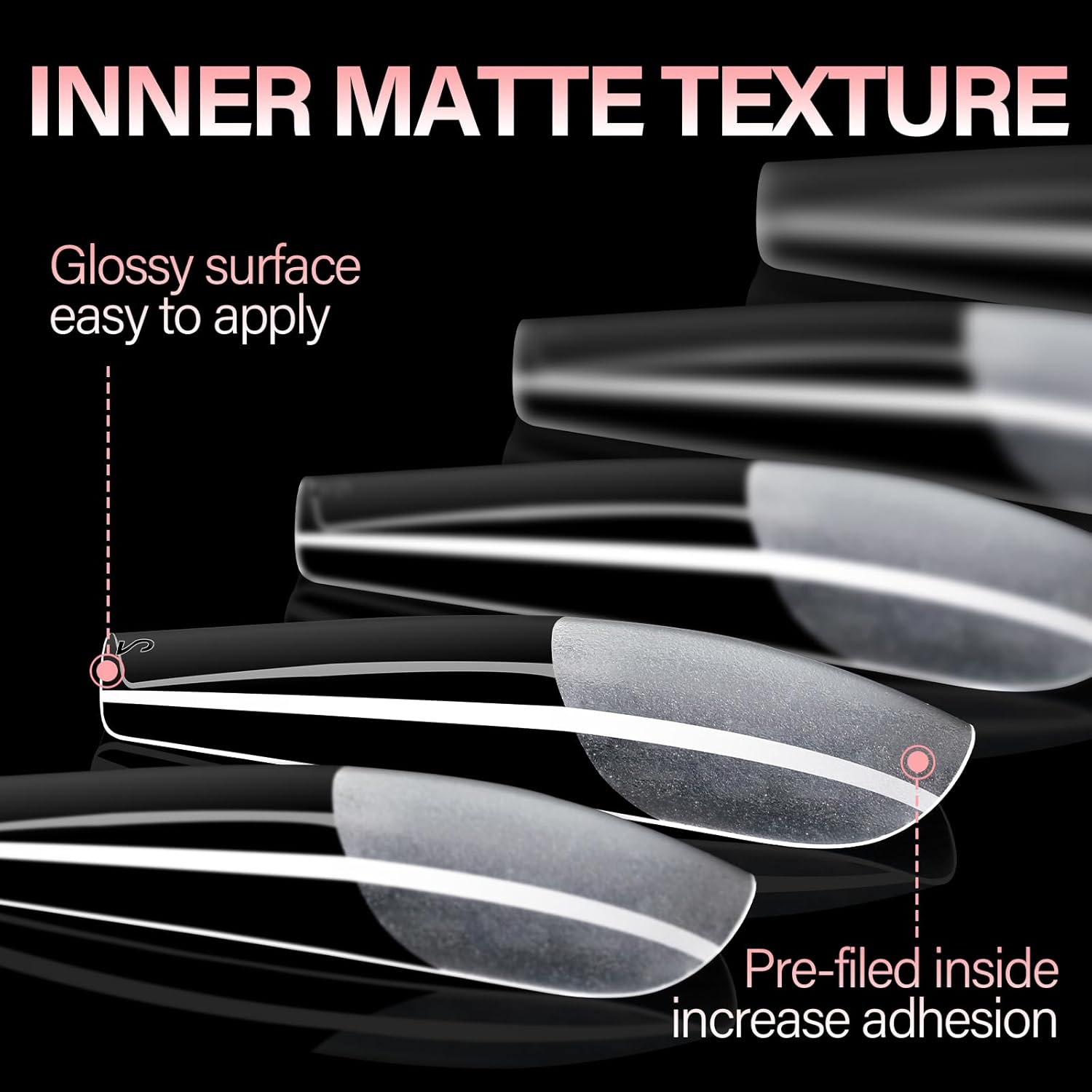 AILLSA Long Coffin Nail Tips Half Matte Full Cover Nails Tips Clear Acrylic Pre-Shaped Tips Flase Press on Nail Tips for Extentions Nails Manicure Salon DIY 216PCS 12 Sizes