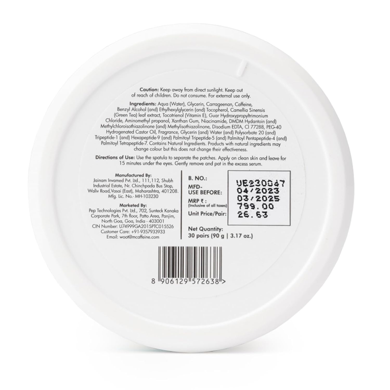 - COOLING EYE PATCHES CONTOURED FOR RIGHT FIT: Thoughtfully contoured to fit anyone and everyone's under eye area effortessly, these under eye patches enriched with 1% Caffeine & Green Tea Extracts smoothe the texture around the under eye area in 15 minutes.