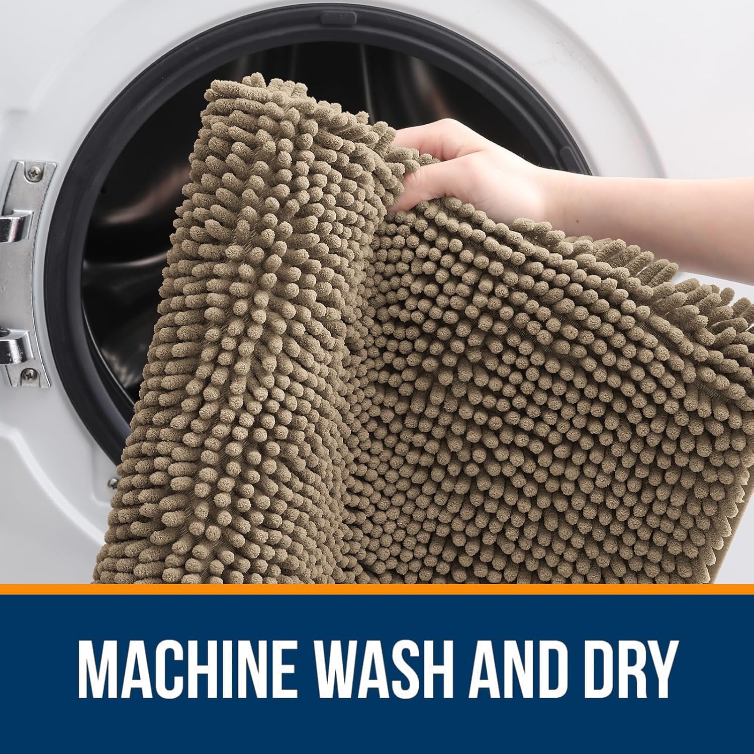- Ultra Absorbent - Meet OLANLY's absorbent bath rug with dense chenille, keeping floors clean when you step out of the bath or shower. Instantly dry your feet on this shaggy rug, protecting your floor from water damage.