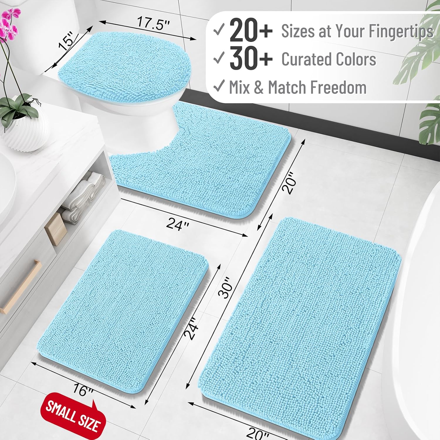 OLANLY Toilet Rugs U-Shaped 24x20, Extra Soft Absorbent Chenille Contour Bathroom Rugs for Toilet, Dry Quickly, Machine Washable, Non-Slip Bath Mat, Sky Blue