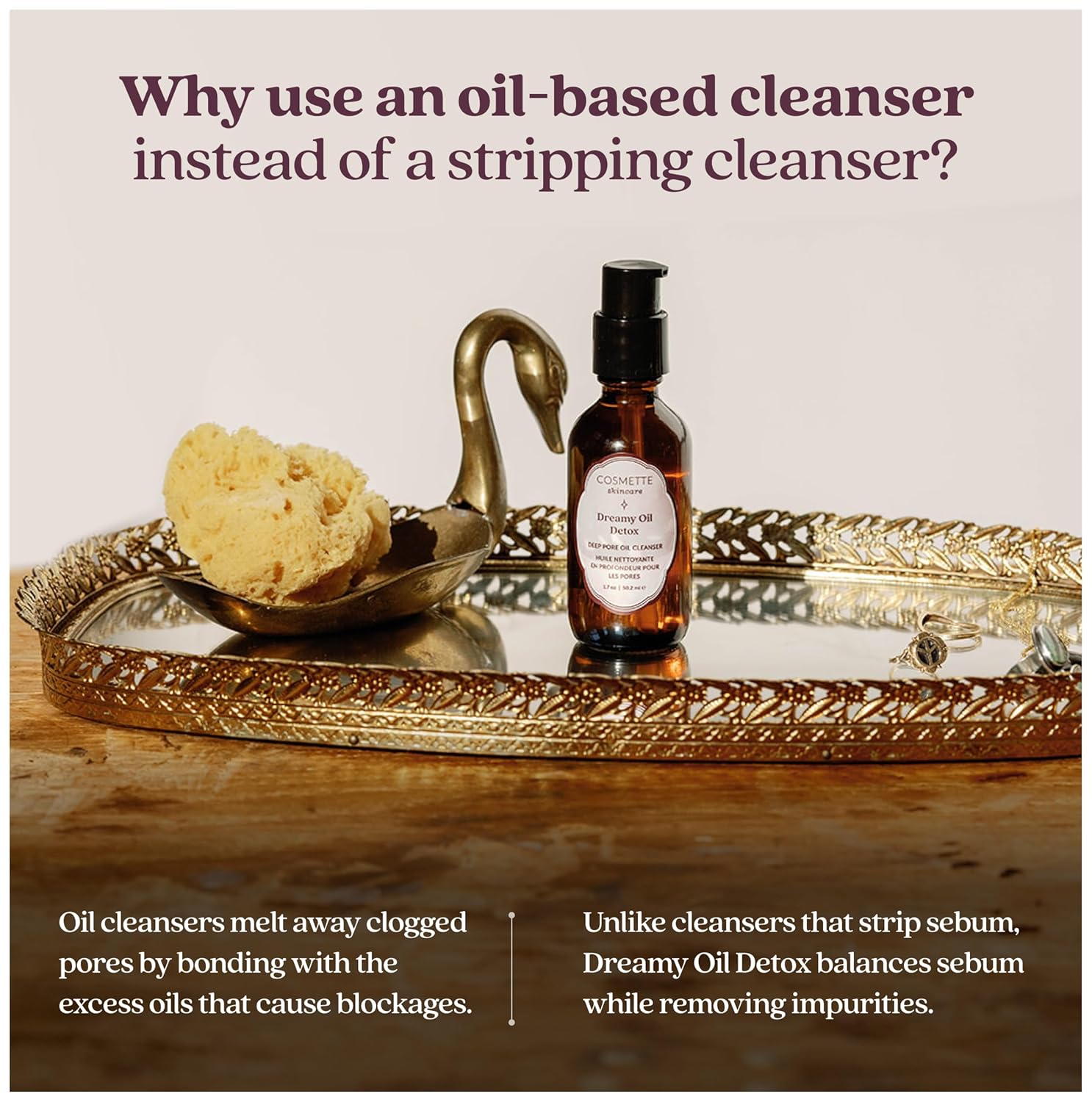 Cosmette Dreamy Deep Cleansing Oil for Face, Vegan Makeup Remover & Facial Pore Oil Cleanser w/Jojoba, Coconut, Castor, Pumpkin & Lavender Oils - Gentle, Hydrating, Natural Korean Skincare, 1.7 FL Oz