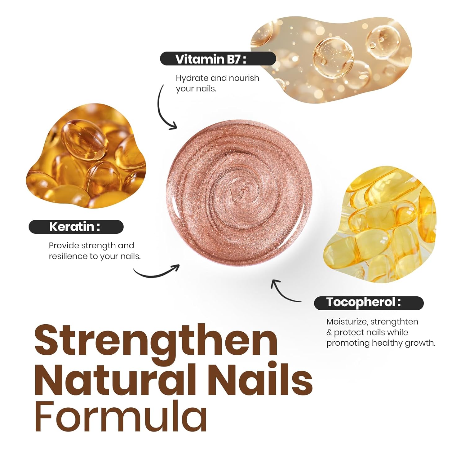 - Quick Dry Nail Polish: Bronzer Gold, our newly introduced nail polish, offers a quick-drying formula that sets in just 1-2 minutes when exposed to air, eliminating the need for UV lights. This innovative feature allows for a speedy and convenient manicure experience, enabling you to indulge in a gorgeous, salon-quality finish in no time