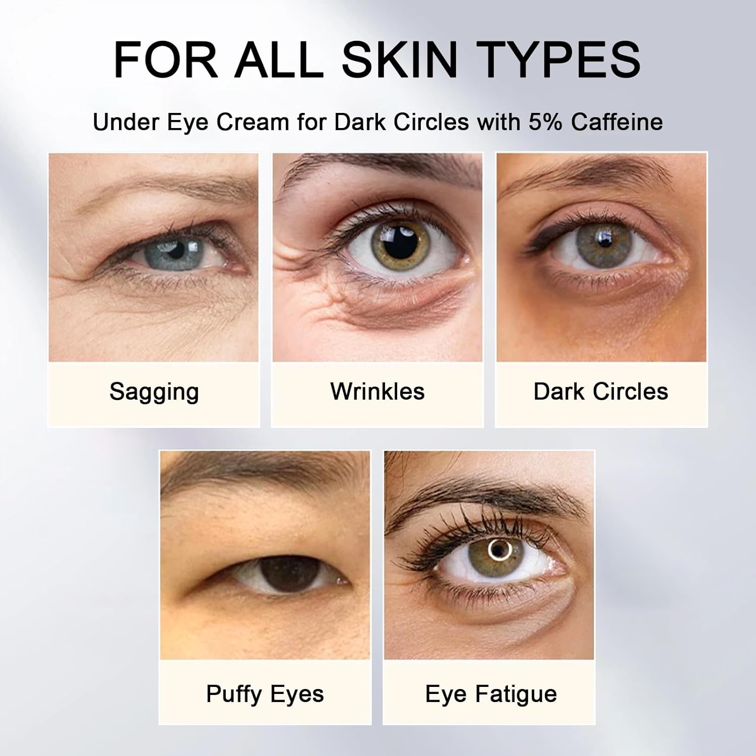 5% Caffeine Eye Cream for Dark Circles & Puffiness, Under Eye Cream for Dark Circles with Caffeine, Eye Cream Anti Aging, Reduce Wrinkles, Fine Lines, Eye Bags, Hydrating Eye Cream for Men & Women