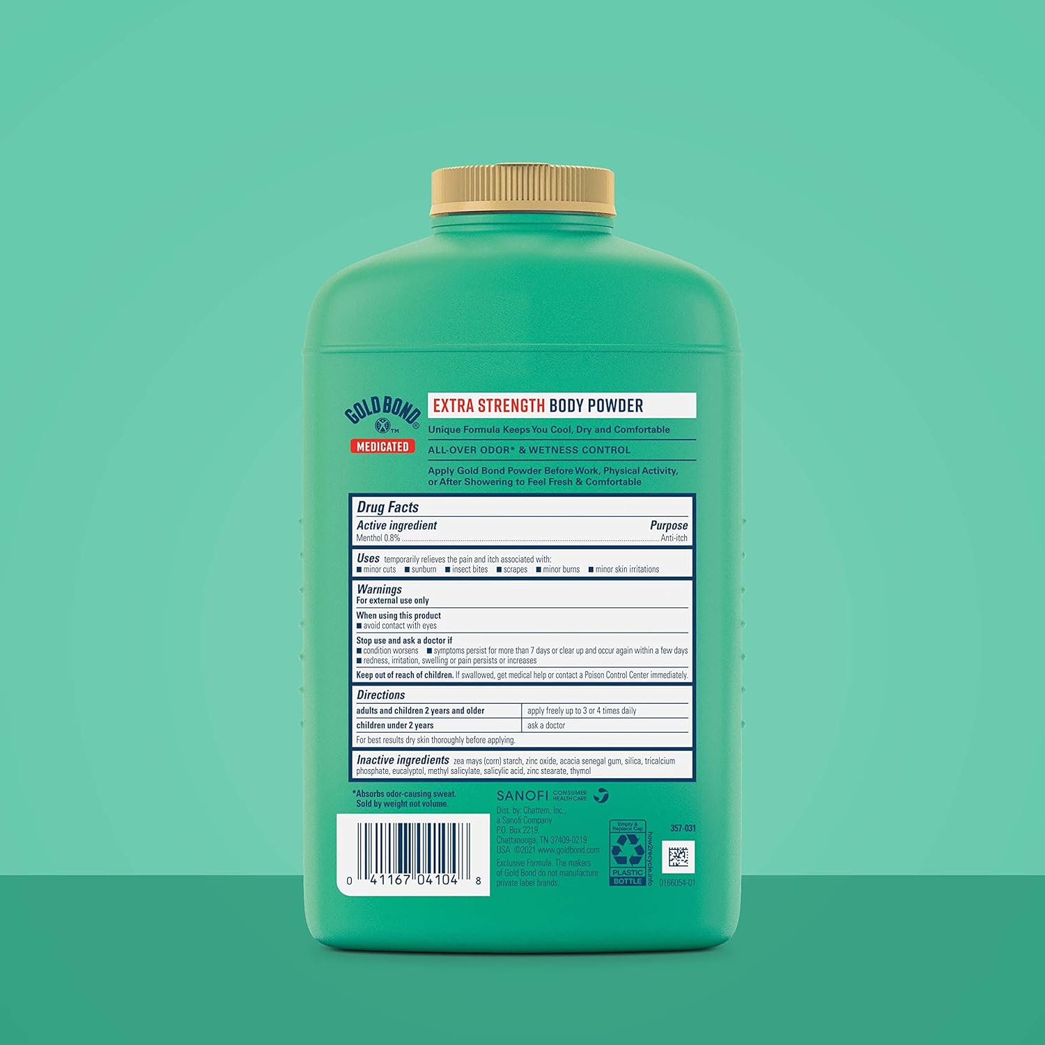 - Includes one (1) 10-oz. bottle of Gold Bond Medicated Talc-Free Extra Strength Body Powder for Cooling, Absorbing & Itch Relief