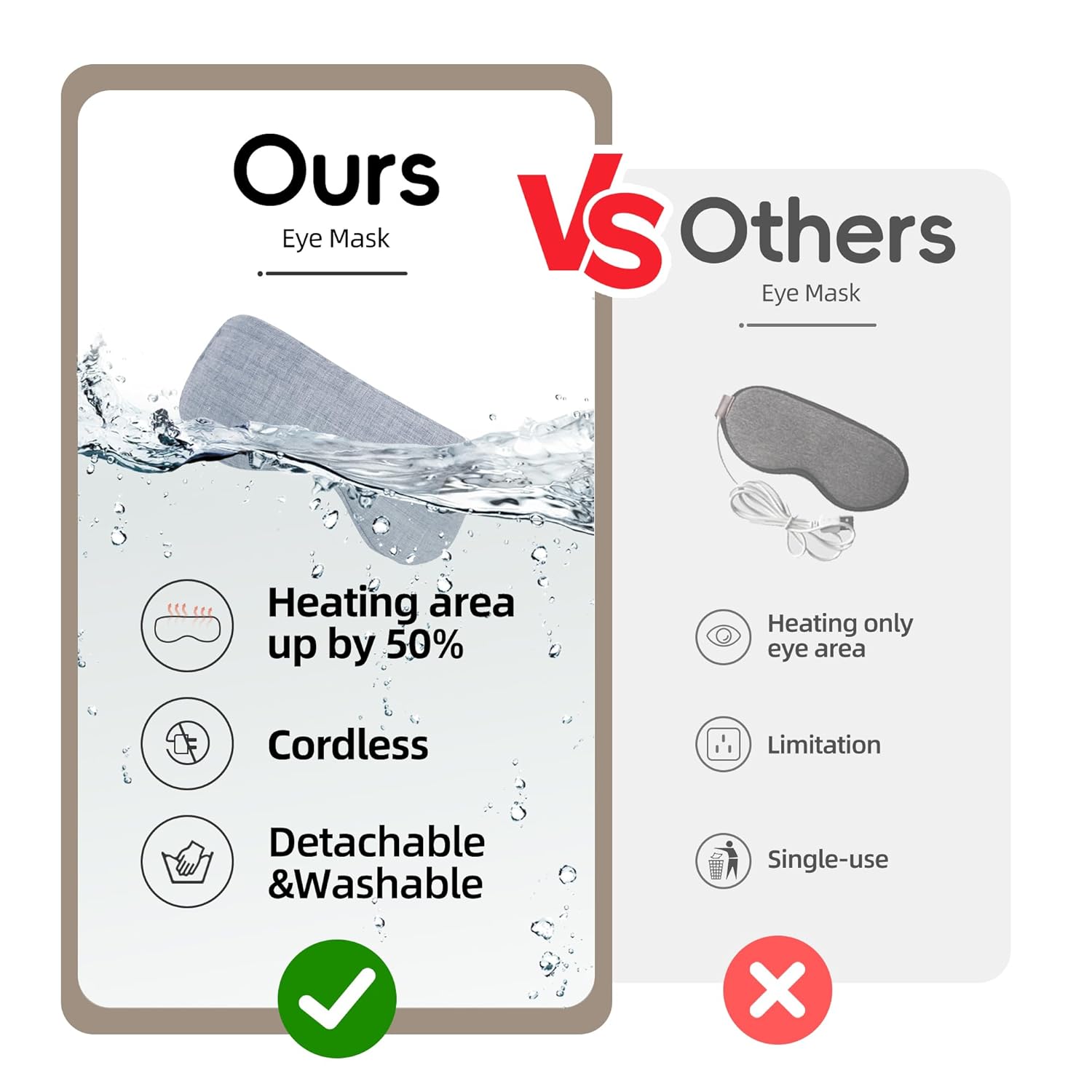 - Therapeutic Heated Eye Mask: Experience unparalleled relaxation and improved sleep with our warming eye mask. Enjoy the gentle warmth surrounding your eyes, fostering a serene environment ideal for relaxation