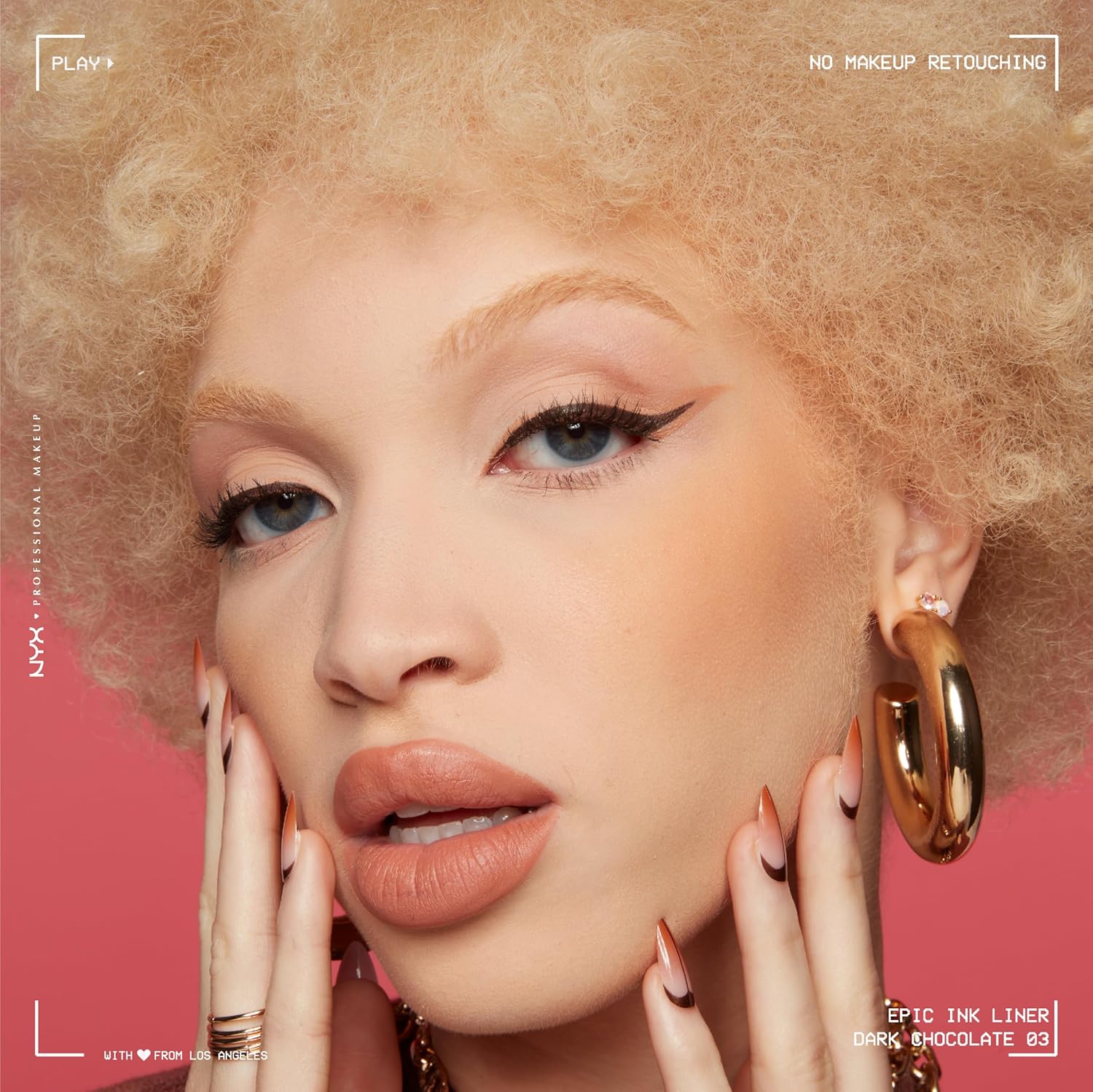 NYX PROFESSIONAL MAKEUP Epic Ink Liner, Waterproof Liquid Eyeliner with Vegan Formula - Dark Chocolate (Dark Brown Matte)