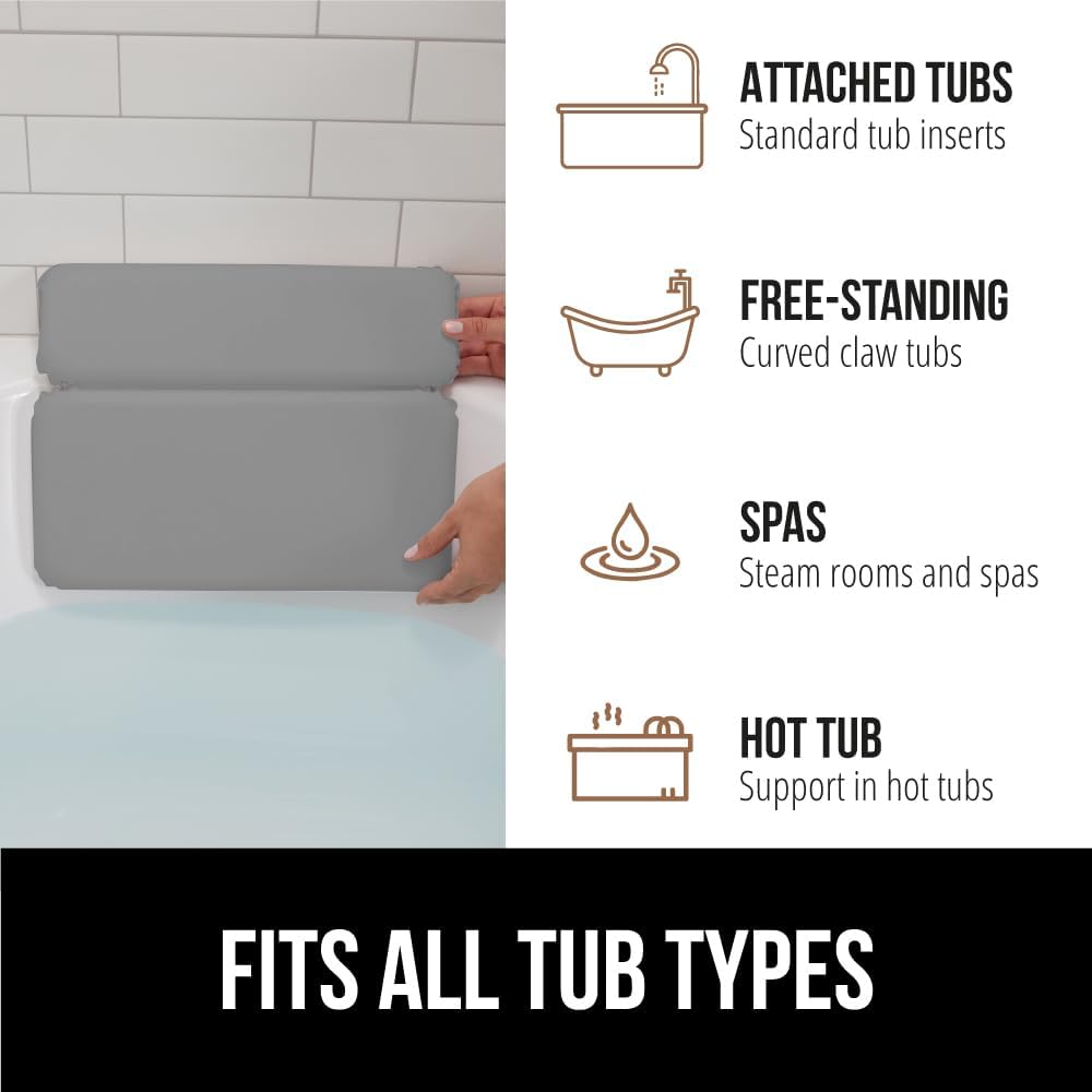 GORILLA GRIP Bath Pillow for Tub, Improved Suction Cups, Luxury Bathtub Pillows, Headrest for Neck and Back Support, Relaxing Home Spa, Hot Tubs and Bathroom Essentials, Gifts for Women, 2 Panel Gray