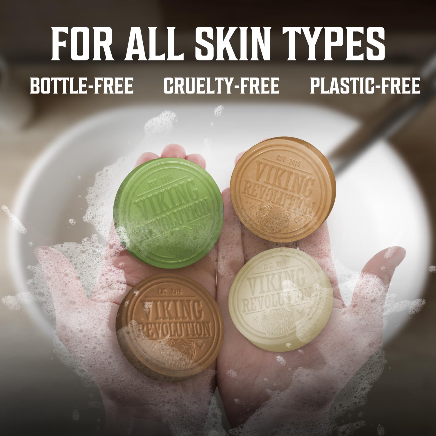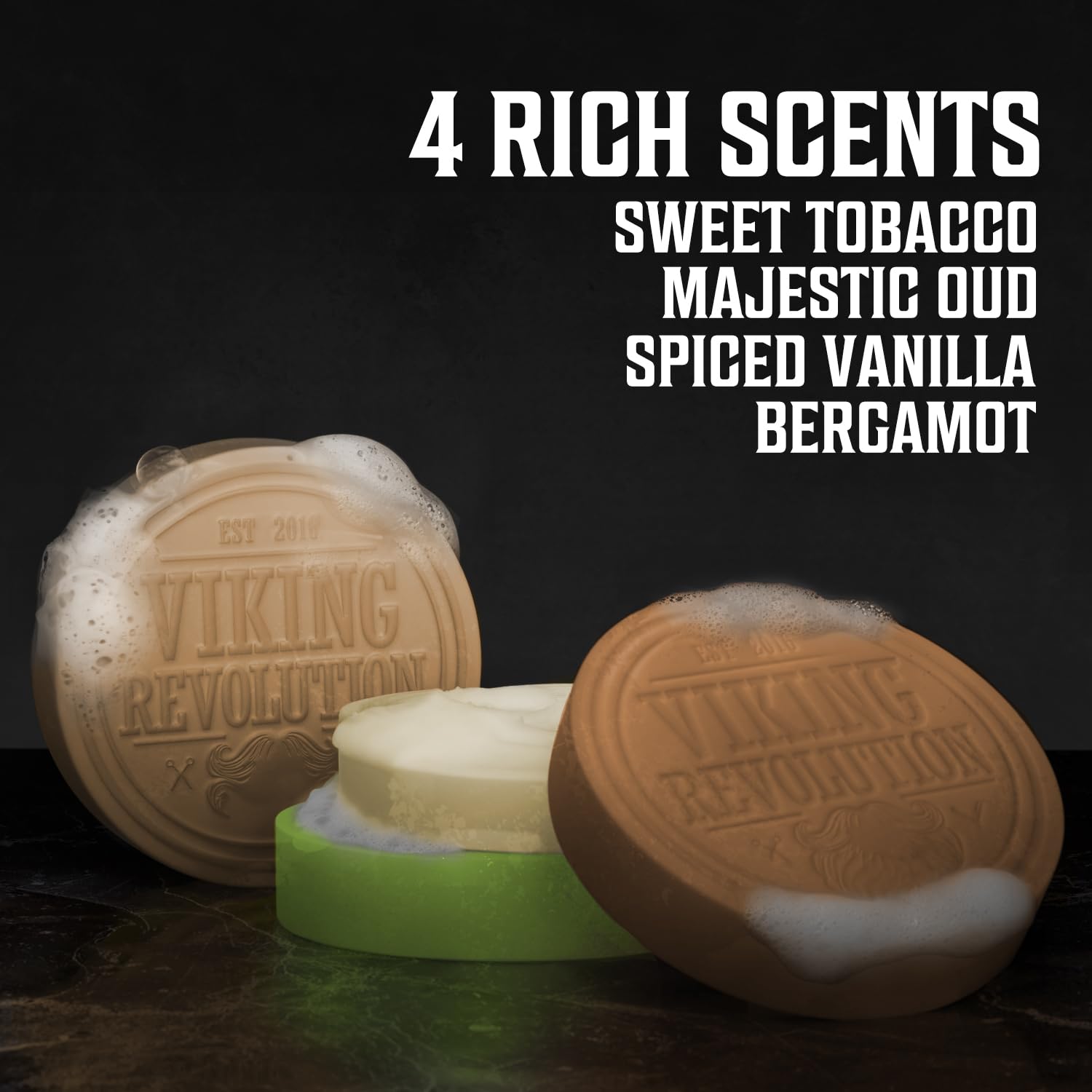 Viking Revolution Shaving Soap for Men - Shave Soap for Use with Shaving Brush and Bowl for Smoothest Wet Shave, Shaving Soap Puck - 4 Pack Variety, Each Pack 2.5oz (Vanilla, Bergamot, Tobacco, Oud)