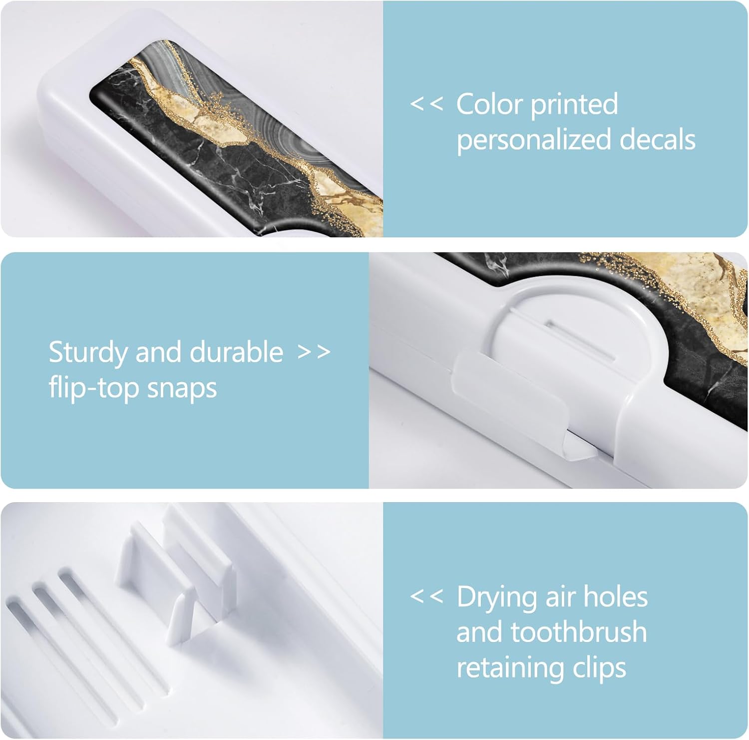 - 【Unique Design】toothbrush holders travel is made of solid white box and colorful patterned resin, which is beautiful and private,The bottom also has air holes to keep the toothbrush case breathable and dry.