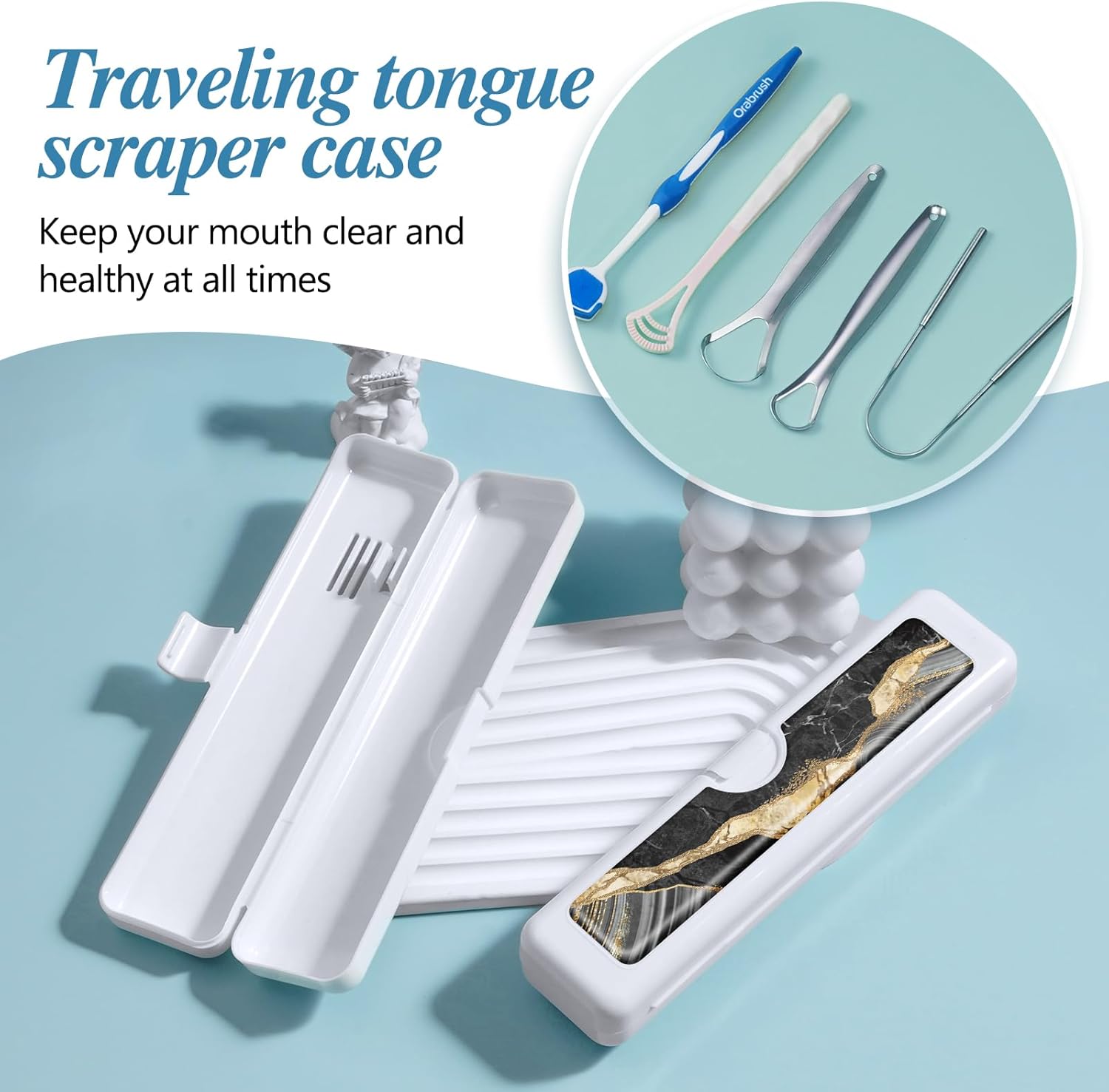 Toothbrush Travel Case - Colorful Pattern, Holder and Covers for Toothbrushes, Includes Tongue Scraper Case