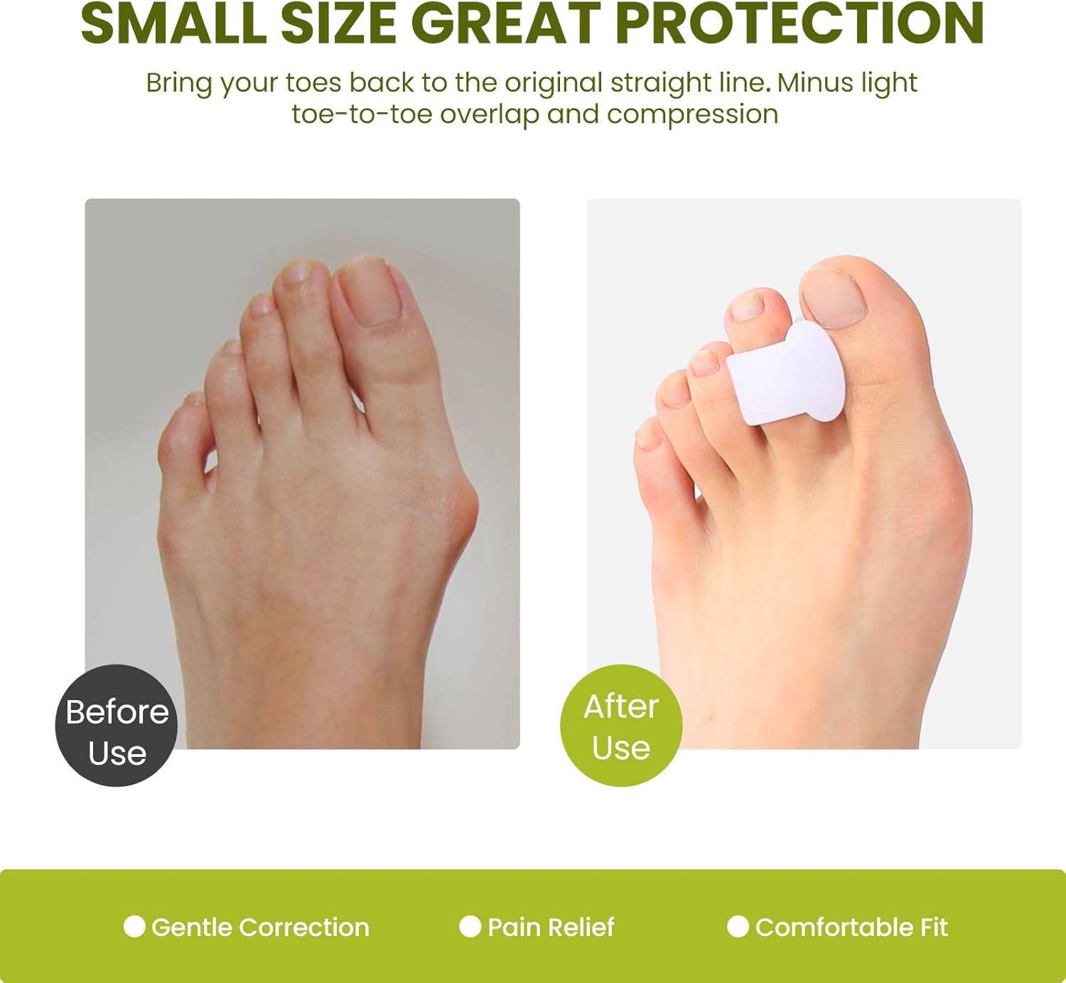 - Versatile Solution -- Whether you're dealing with bunions, overlapping toes, hammer toes, or other foot issues, our toe separators for women are designed to address a wide range of conditions. Experience comprehensive foot care and regain your mobility and comfort.