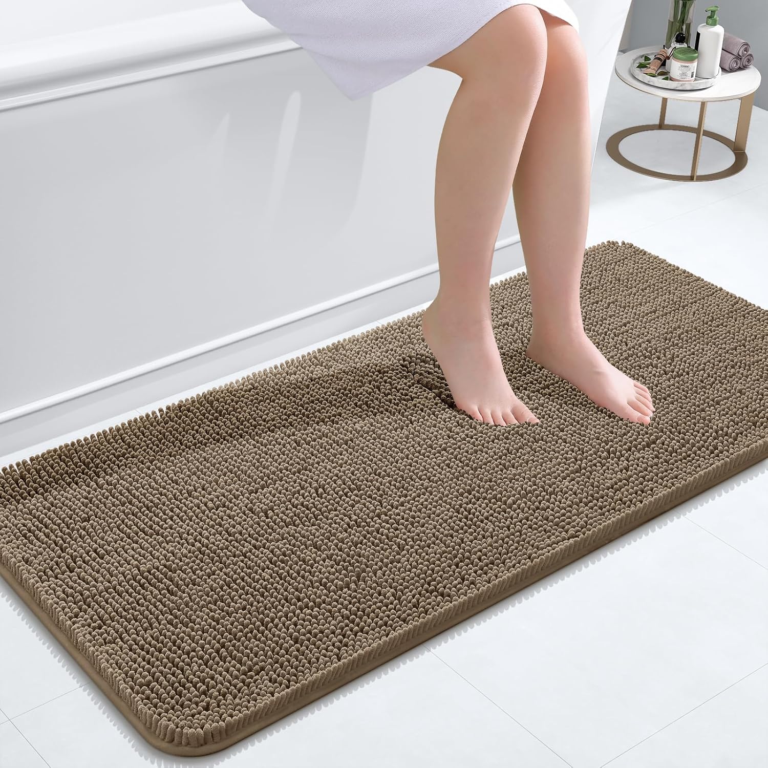 OLANLY Bathroom Rugs 47x20, Extra Soft Absorbent Chenille Bath Rugs, Rubber Backing Quick Dry, Machine Washable Bath Mats for Bathroom Floor, Tub and Shower, Home Decor Accessories, Tan
