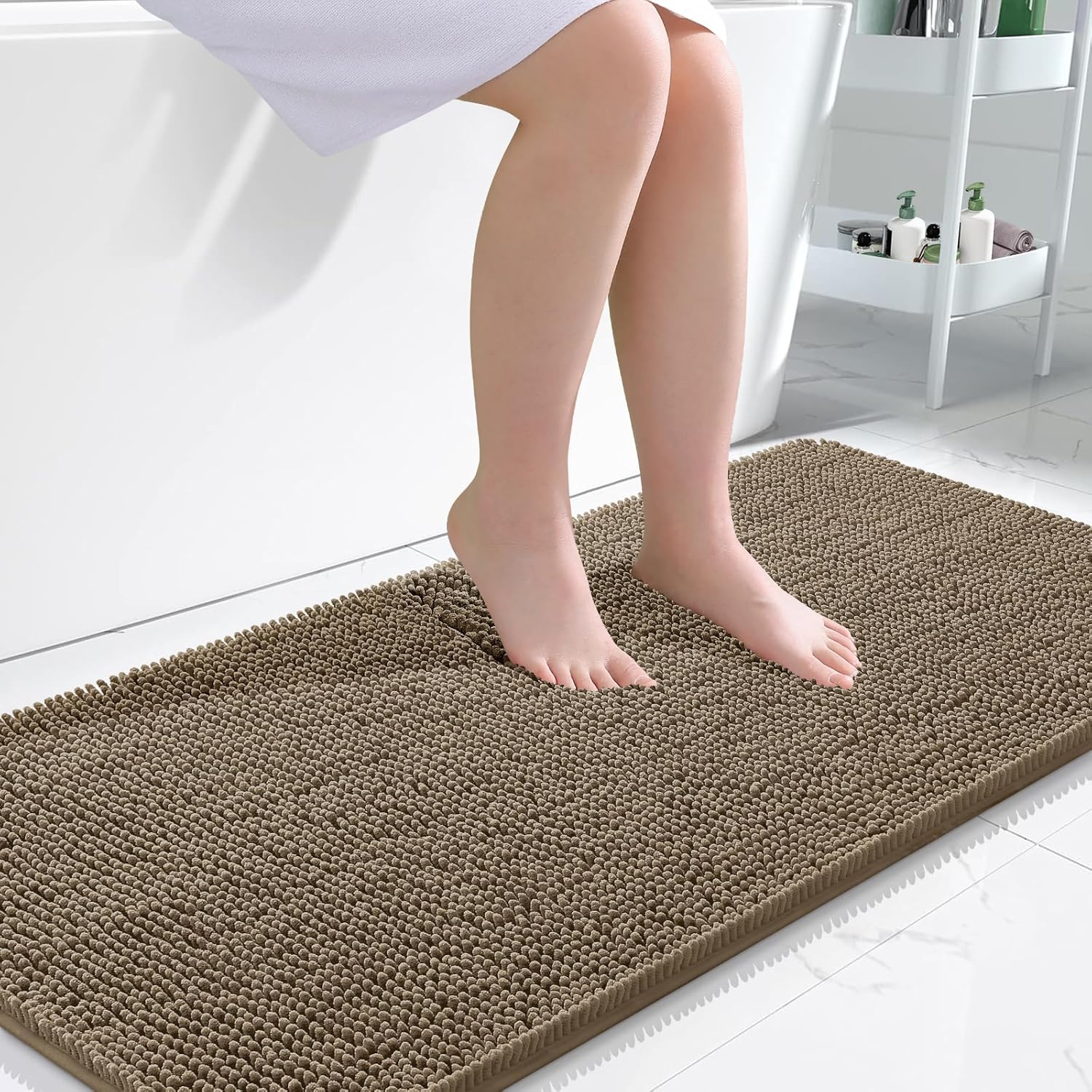 OLANLY Bathroom Rugs 47x24, Extra Soft Absorbent Chenille Bath Rugs, Rubber Backing Quick Dry, Machine Washable Bath Mats for Bathroom Floor, Tub and Shower, Home Decor Accessories, Tan