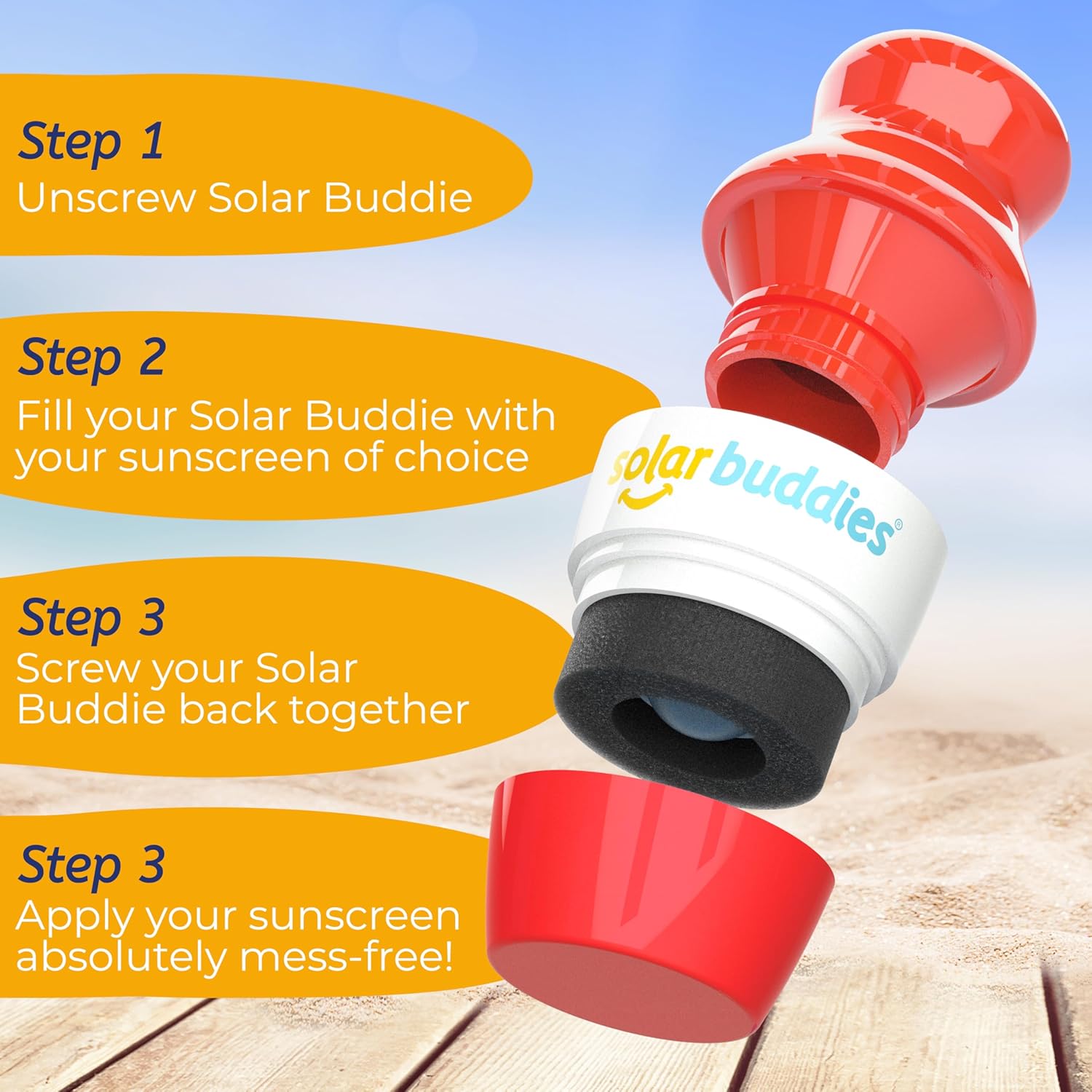 Solar Buddies Sunscreen Applicator - Single Red - Refillable Roll on Sponge Sunscreen, Suncream & Lotion Applicator For Kids, Adults & Families - Holds 3.4fl oz, Perfect Size for Travel