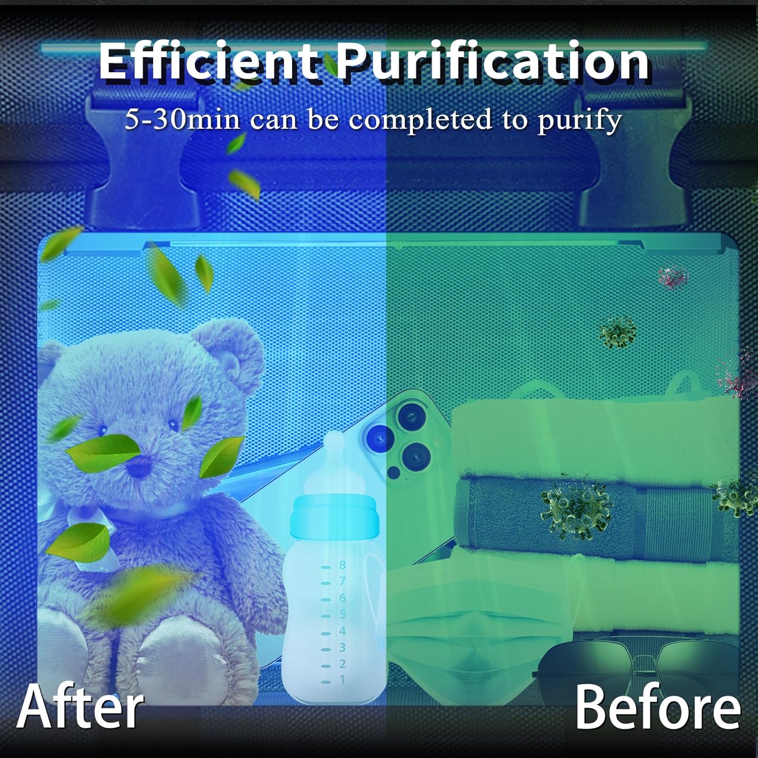 - VISIBLE WINDOW - The UVC Bag has a visual window, enabling you to observe the UV light operation at any times.