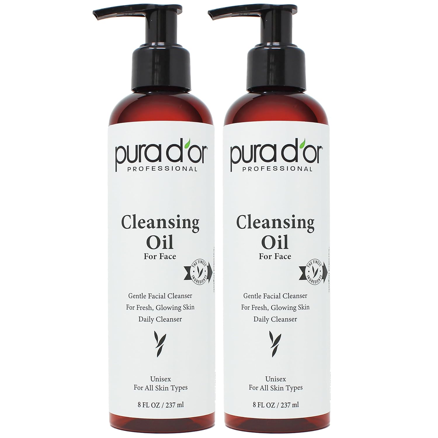 PURA D'OR Facial Cleansing Oil (8 Oz x2 = 16 Oz) Nourishing Botanical Blend with & Vitamin, Jojoba and Sunflower Oil - Gentle Makeup Remover & Deep Cleanser For Healthy, Glowing Skin - Paraben-Free