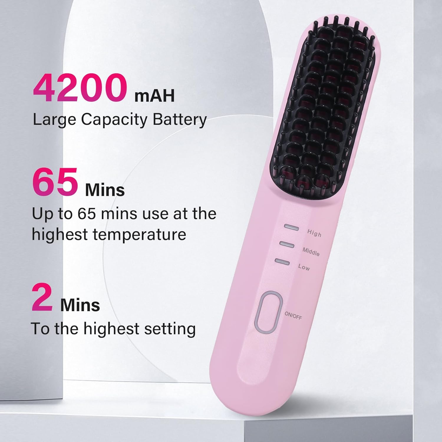Rechargeable Hot Hair Brush Straightener Heat Pressing Combs Ceramic Electric Straightening Comb, Anti Burn for Natural Black Hair Beard Wigs Holiday Gifts