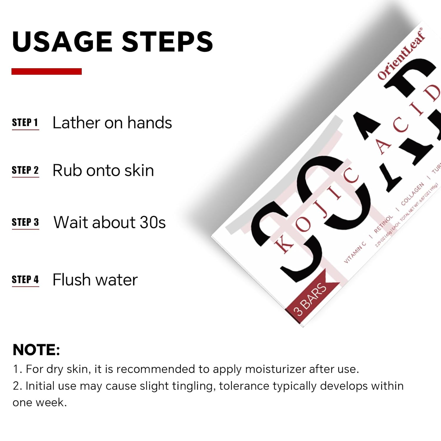 - OrientLeaf Kojic Acid Soap: Gently cleanses and refreshes your skin, helping you maintain a healthy, balanced complexion, dark spot remover. Suitable for face and body, this soap helps support clear, trouble-free skin.