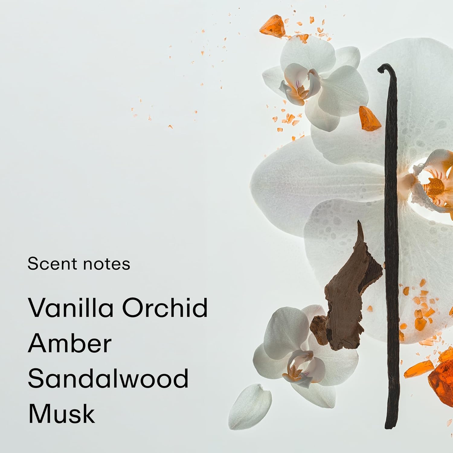 - SCENT NOTES: Top: Bergamot Peel, Mandarin, Freesia. Heart: Jasmine Petals, Waterlily, Vanilla Orchid. Base: Amber, Sandalwood, Musk