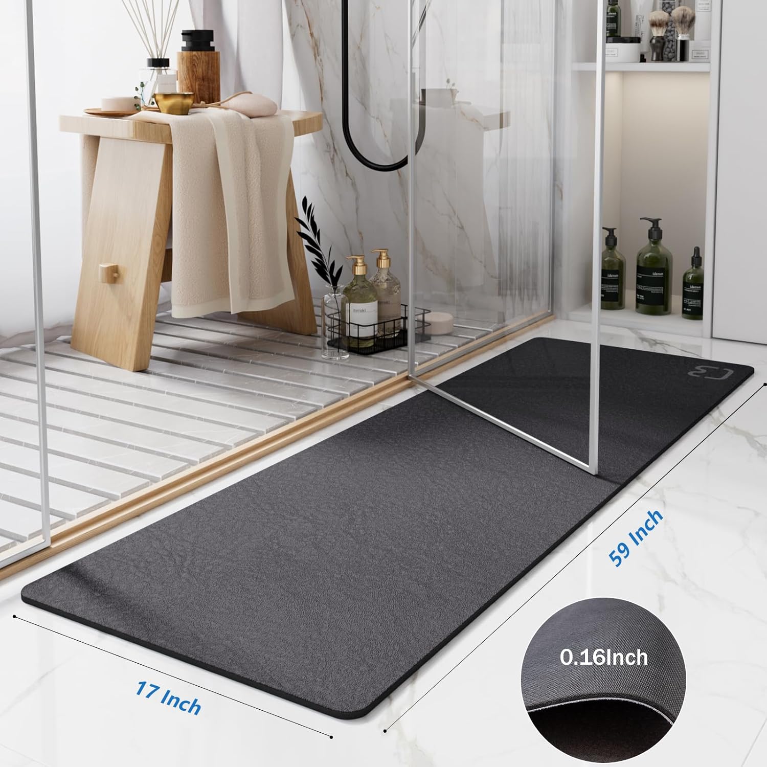 Diatomaceous Earth Bath Mat 17" x 59" Extra Long Bathroom Mat Large Fast Dry Super Absorbent Non-Slip Rubber Backed Shower Mat Bath Rugs Mats for Bathroom Floor, Tub, Shower, Sink, Dark Grey
